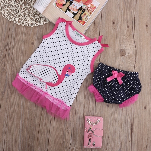 Dropship Toddler girl swan polka dots 2 pcs outfits Baby