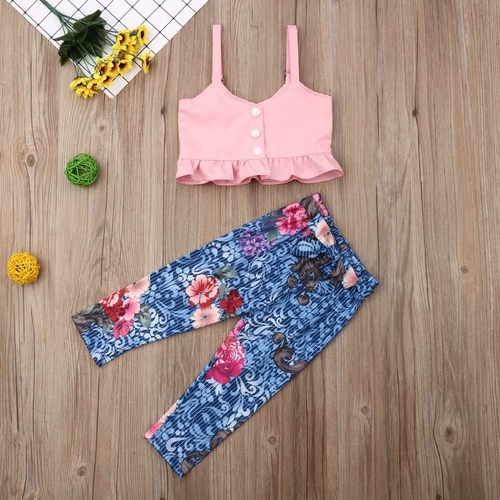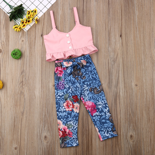 Model Number: Top Floral Pants Sunsuit Outfit Set 1-6Y