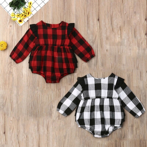 Material: COTTON Material: Polyester Style: Fashion Model Number: Kids Baby Girl Bodysuit Christmas Clothes Gender: Baby Girls Pattern Type: Plaid Collar: O-Neck Sleeve Length(cm): Full Fit: Fits true to size, take your normal size
