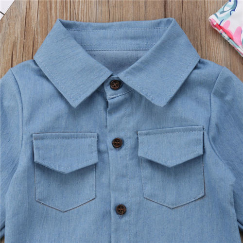 Model Number: Baby Girls Denim Long sleeve Top Floral Long Pants Headband 3Pcs