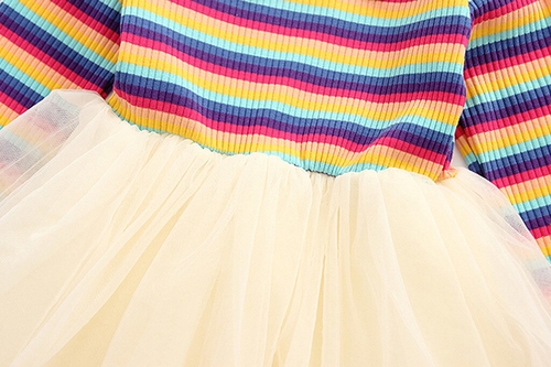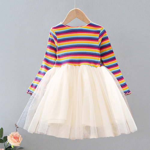 Model Number: Kids Girls Rainbow Striped Tulle Patchwork Princess Dress Clothes