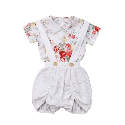 Department Name: Children Item Type: Sets Style: Casual Material: COTTON Gender: Girls Sleeve Length(cm): Short Pattern Type: Floral Collar: O-Neck Sleeve Style: REGULAR Closure Type: Pullover Fit: Fits true to size, take your normal size