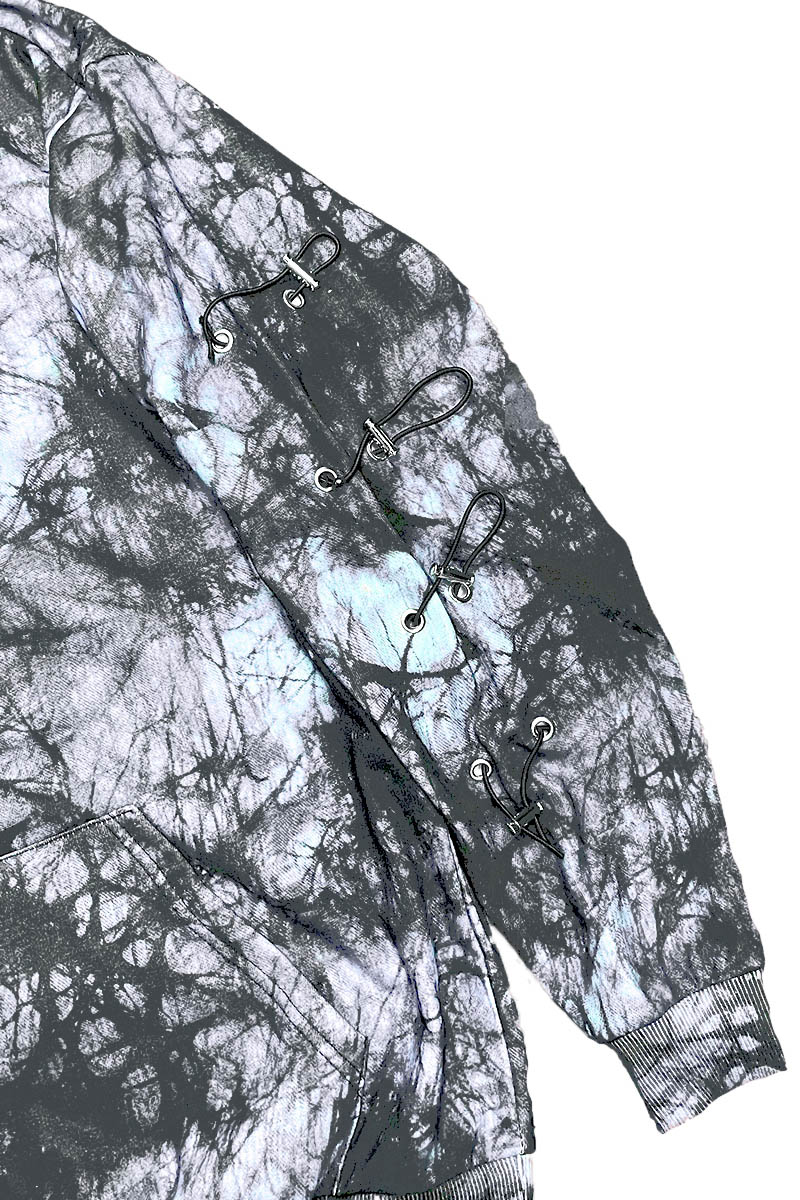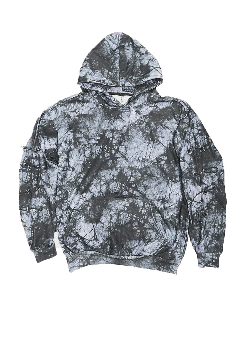 The Side Toggle Sweat Set includes a pullover hoodie and matching sweatpants, both designed with a stylish tie-dye pattern. The hoodie features a comfortable regular fit, making it easy to wear for any occasion. The unique sleeve and side pant toggle design not only enhances the overall look but also allows for adjustable comfort.