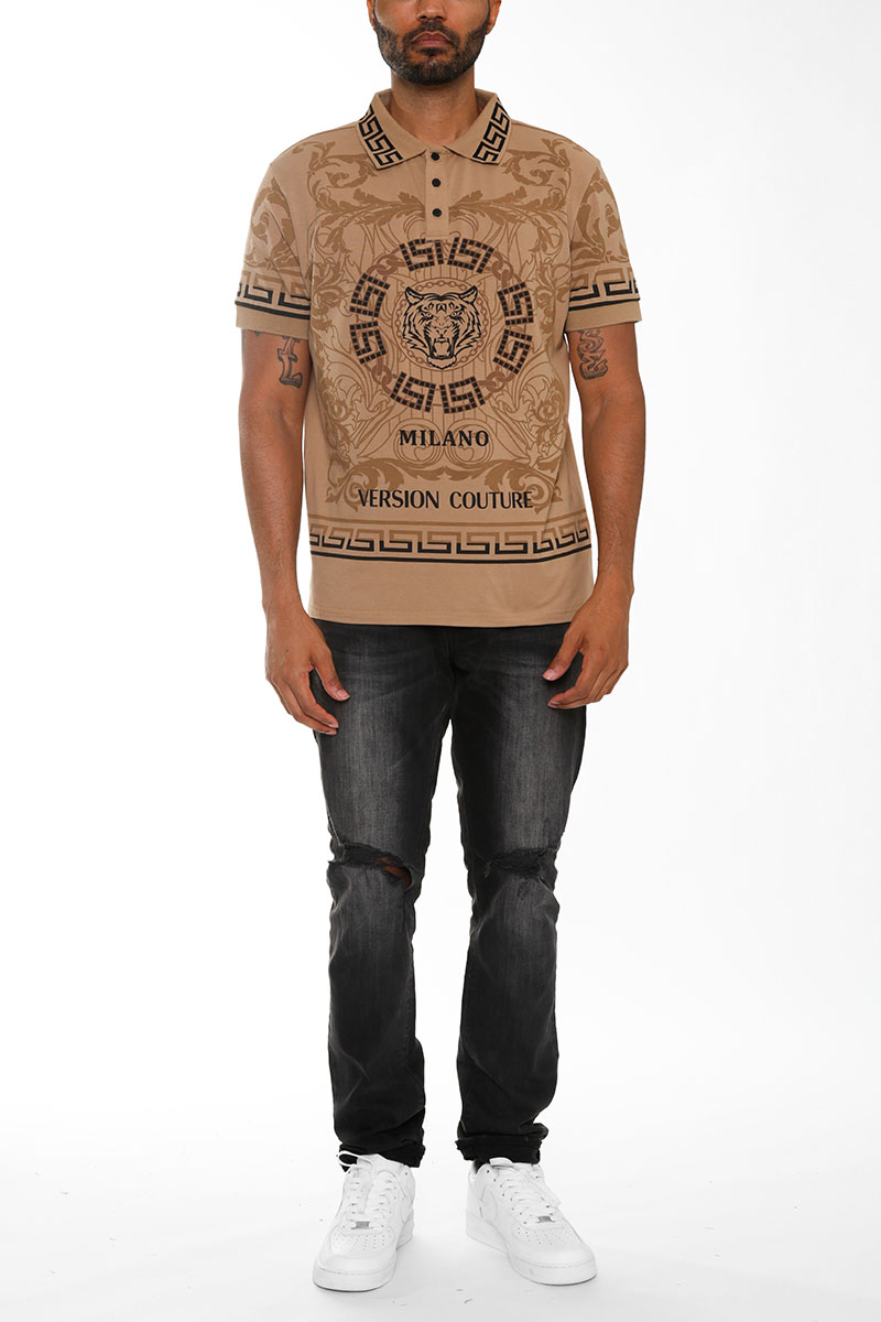 Dropship Italian Print Collared Polo Shirt