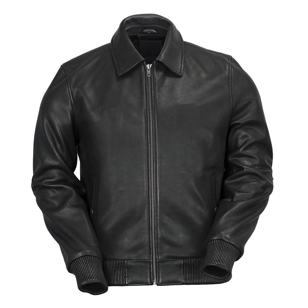 Castor Men's Bomber Leather Jacket made from genuine diamond cowhide leather, featuring ribbed cuffs and waistband, fully lined with two hand pockets.