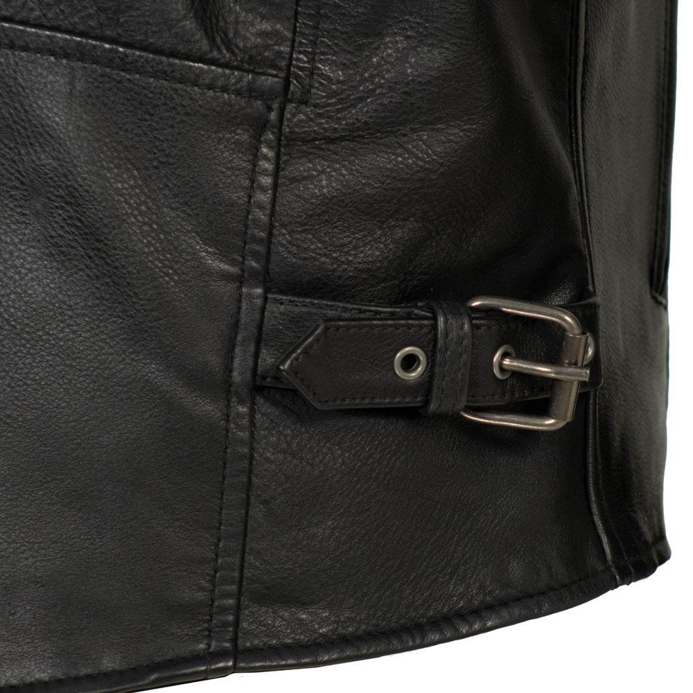 One of the standout features of the Indy Men's Motorcycle Leather Jacket is its true fit design. You can confidently order the same size as your favorite t-shirt, ensuring a comfortable and flattering fit. The adjustable side belts allow for further customization, accommodating various body types and preferences. Underarm gussets and grommets enhance mobility, making it easier to maneuver while riding.