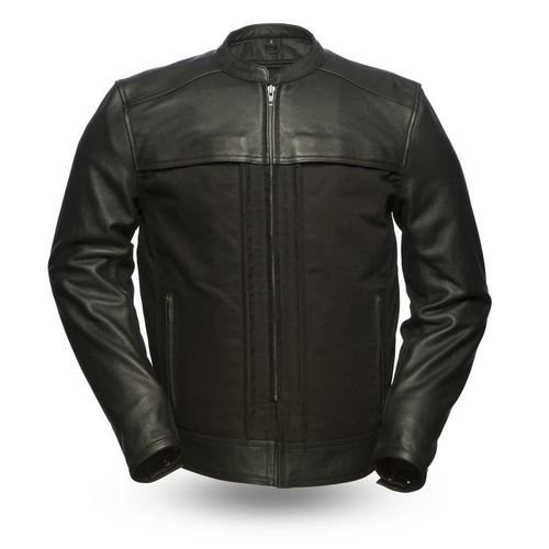 This jacket features a center zipper scooter style with a banded collar, giving it a classic yet modern appearance. The canvas body enhances breathability, while the leather trim zippered pockets offer secure storage for your essentials. With full-length zippered storage compartments, you can easily carry your belongings without compromising on style.