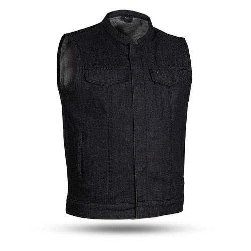 Dropship Kershaw - Men's Denim Motorcycle Vest - Black-FS