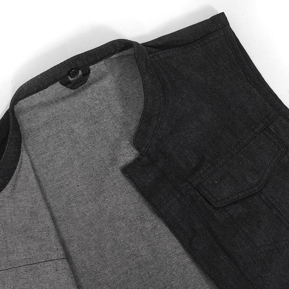 The vest features an unlined raw denim interior, which not only enhances comfort but also adds to the rugged aesthetic of the vest. This design choice allows for breathability, making it suitable for various weather conditions. You can wear it comfortably over a t-shirt or layer it with a hoodie for added warmth.