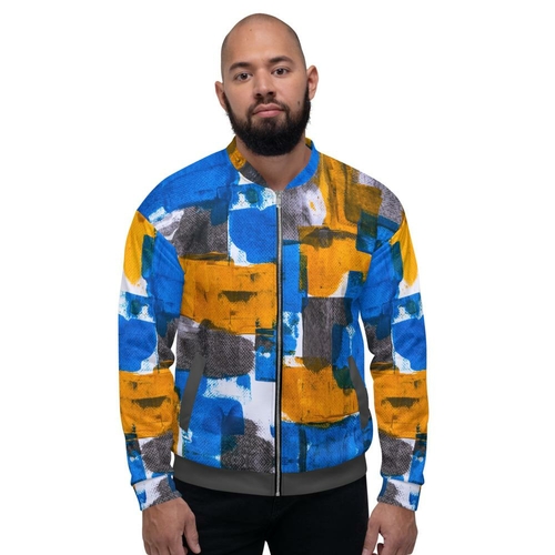 The vibrant grey and multicolor pattern of this bomber jacket is eye-catching and trendy. It effortlessly combines retro vibes with modern aesthetics, allowing you to express your individuality. Whether you're dressing up for a night out or keeping it casual, this jacket will elevate your look.