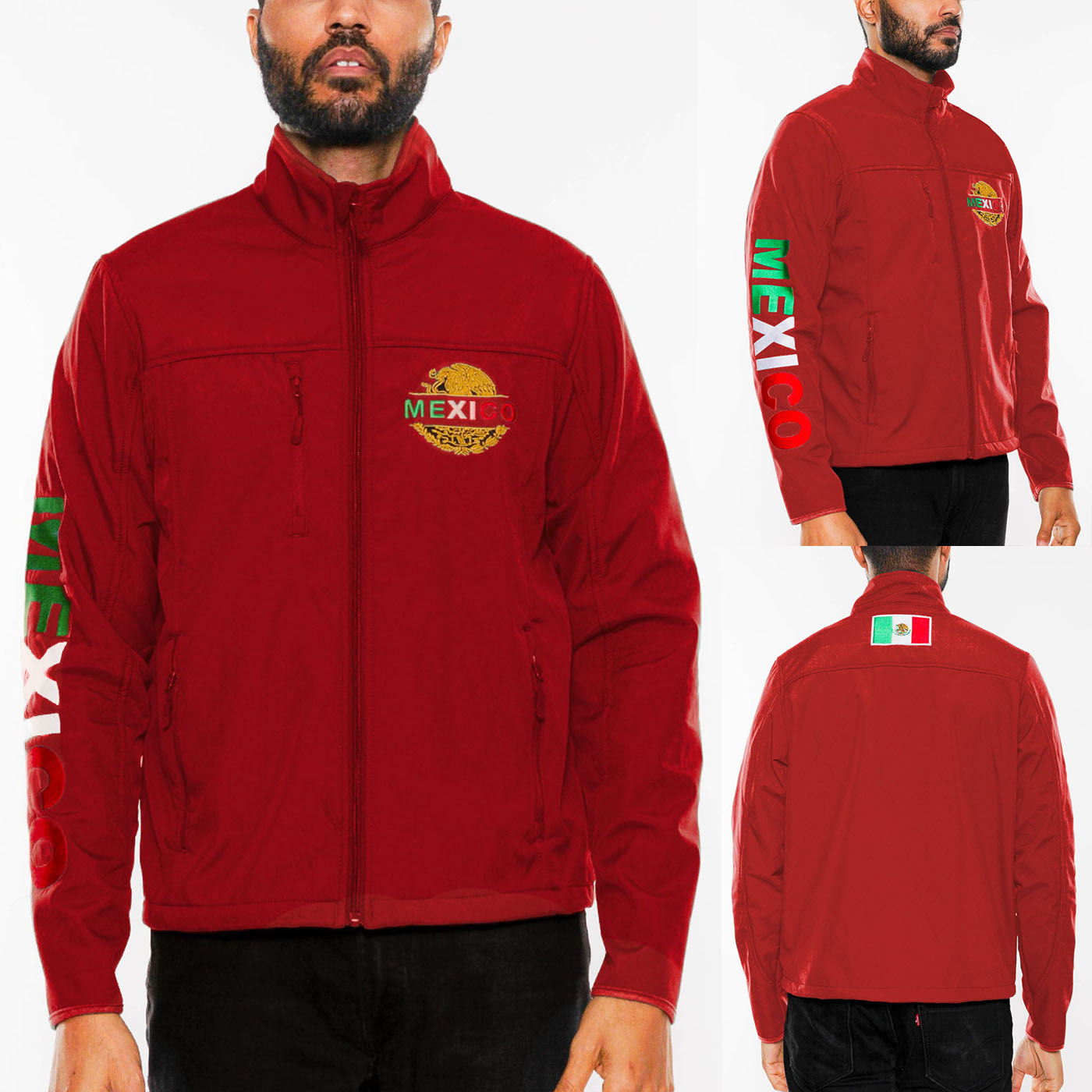 The Mexico Embroidered Soft Shell Jacket is the perfect blend of style and functionality, designed for those who appreciate quality outerwear. This jacket features a water-repellent coating, ensuring you stay dry and comfortable in various weather conditions. Made from a soft shell fabric that consists of 95% polyester and 5% spandex, it offers both durability and flexibility, making it ideal for outdoor activities or casual wear.