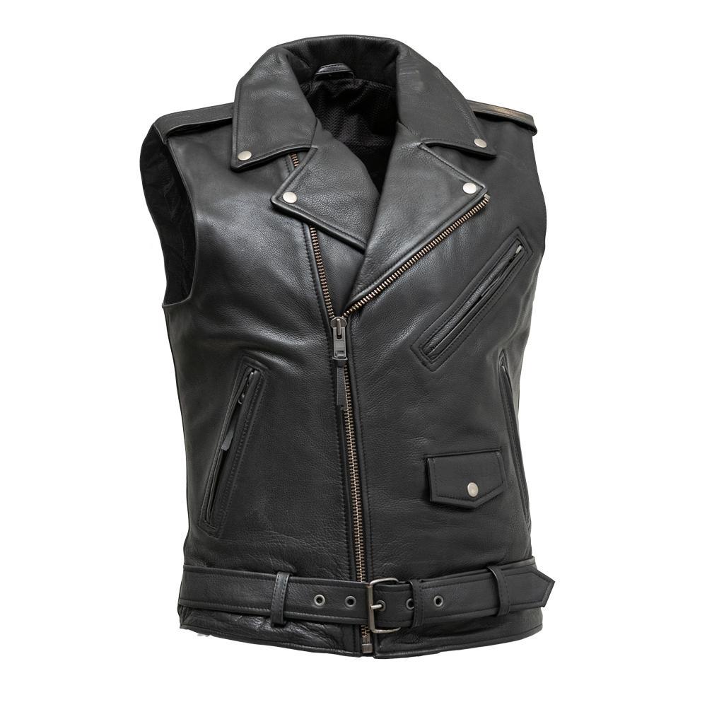 The Rockin Men's Motorcycle Leather Vest is the perfect blend of style, comfort, and functionality for any motorcycle enthusiast. Made from high-quality 1.1-1.2mm drum dye naked cowhide, this vest not only looks great but also provides durability and protection on the road. Whether you're cruising down the highway or parked at a local bike meet, this vest will keep you looking sharp.