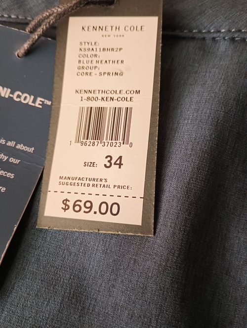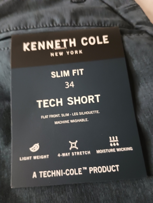 In summary, the Blue Heather Kenneth Cole Tech Short in size 34 is an essential addition to any man's wardrobe. With its slim fit, lightweight fabric, 4-way stretch, moisture-wicking properties, and convenient hidden pocket, these shorts are designed for both performance and style. Don't miss out on the opportunity to elevate your casual wear with this versatile and fashionable piece.