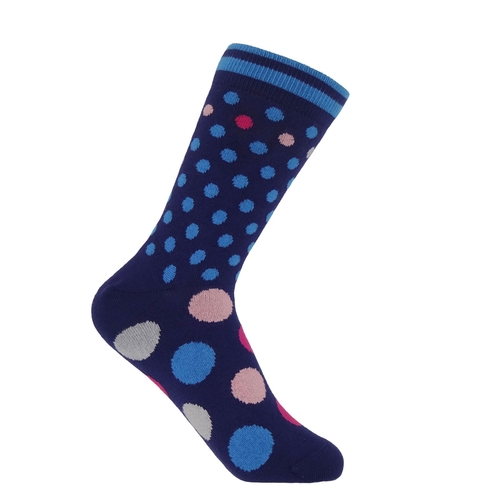 Introducing the Mary Women's Socks in Navy, a delightful addition to any woman's wardrobe. These socks are not just a fashion statement; they are designed to inspire and impress with their vibrant polka dot pattern featuring shades of pink, grey, magenta, and blue. Perfect for both everyday wear and more formal occasions, these socks will elevate your outfit while providing comfort and style.