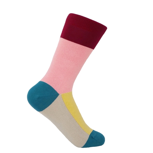 Introducing the Victoria Women's Socks in a vibrant pink hue, designed to elevate your wardrobe with a splash of color. These socks are not just a fashion statement; they are crafted with care and precision, ensuring that every pair meets the highest standards of quality and comfort. The contrasting colors of wine, taupe, blue, and yellow add a spirited touch, making them a delightful addition to any outfit.