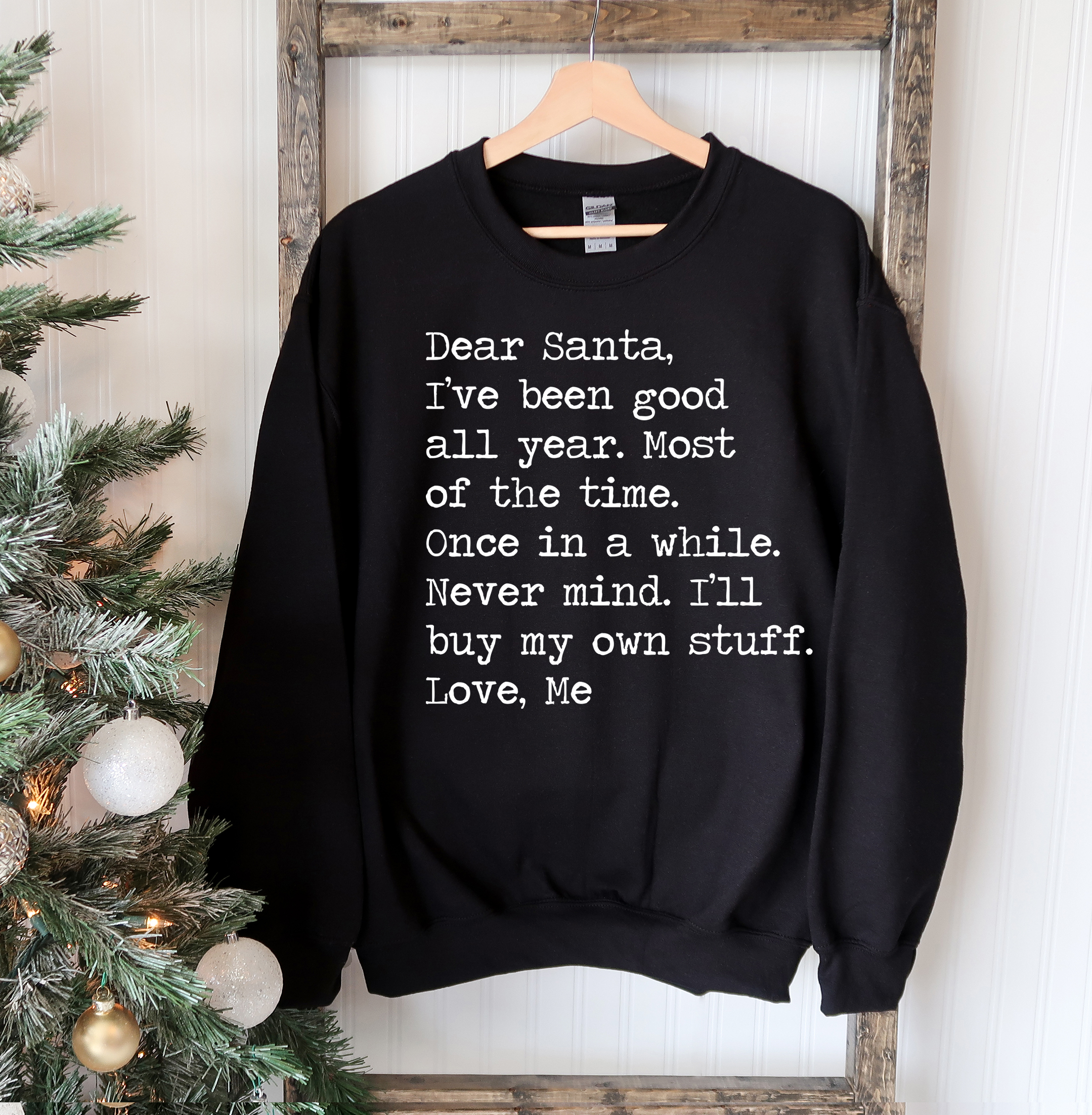 Whether you're attending a holiday party, lounging at home, or shopping for gifts, the Dear Santa Christmas Sweatshirt is the perfect companion. Its festive design is sure to spread cheer and make a statement wherever you go. Pair it with your favorite jeans or leggings for a laid-back yet stylish look that captures the essence of the holiday season.
