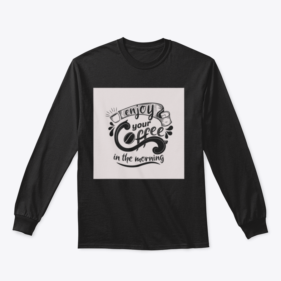 A comfortable premium motivational shirt featuring the quote 'Enjoy Your Coffee In The Morning', made from 100% cotton, displayed on a neutral background.