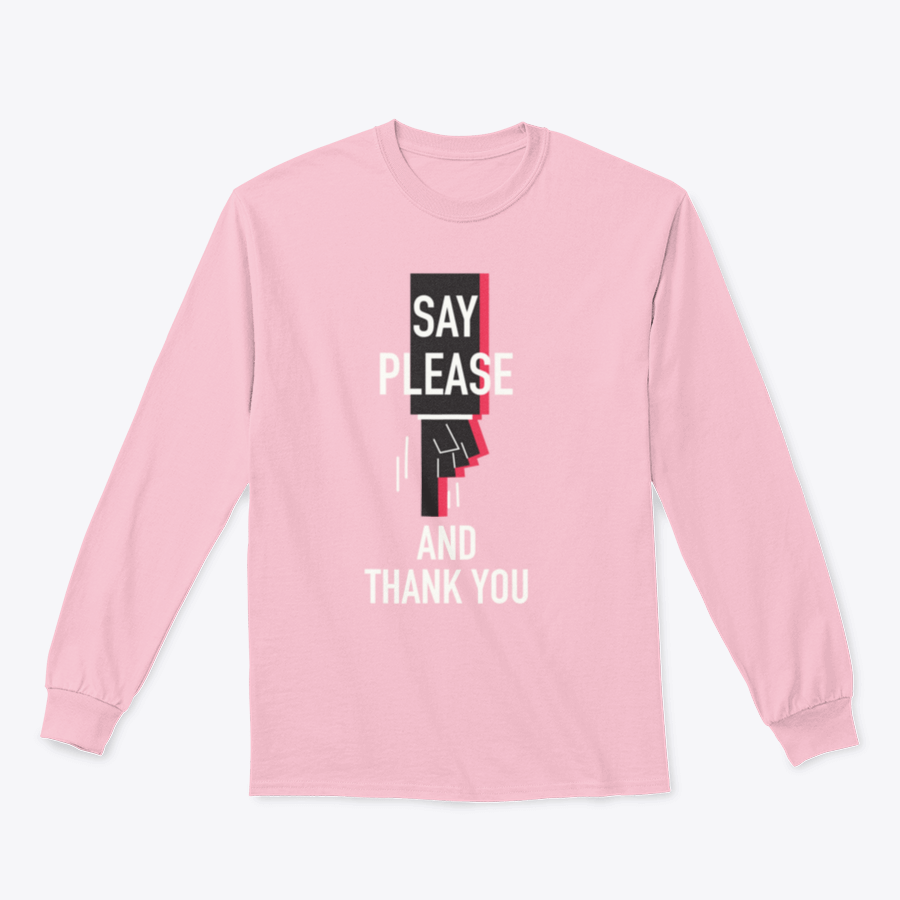 To keep your 'Say Please And Thank You' design looking its best, we recommend following the care instructions provided. Machine wash cold with like colors, tumble dry low, and avoid using bleach to maintain the integrity of the fabric and print. With proper care, this piece will remain a favorite in your wardrobe for years to come.