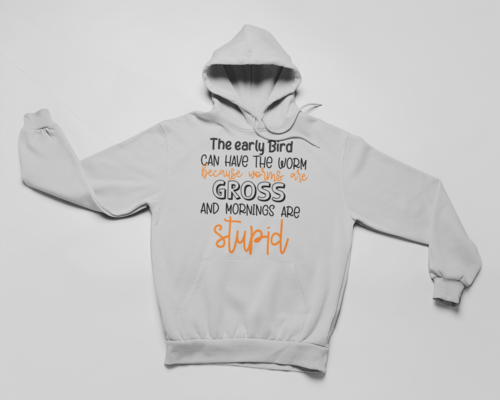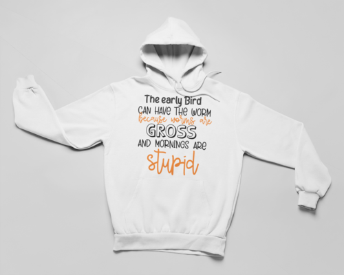 Introducing The Early Bird Can Have The Worm Hoodie, a stylish and comfortable addition to your wardrobe. This hoodie is not just a piece of clothing; it's a statement of individuality designed by hundreds of top artists. Whether you're lounging at home or heading out with friends, this hoodie allows you to express who you are while keeping warm and cozy.
