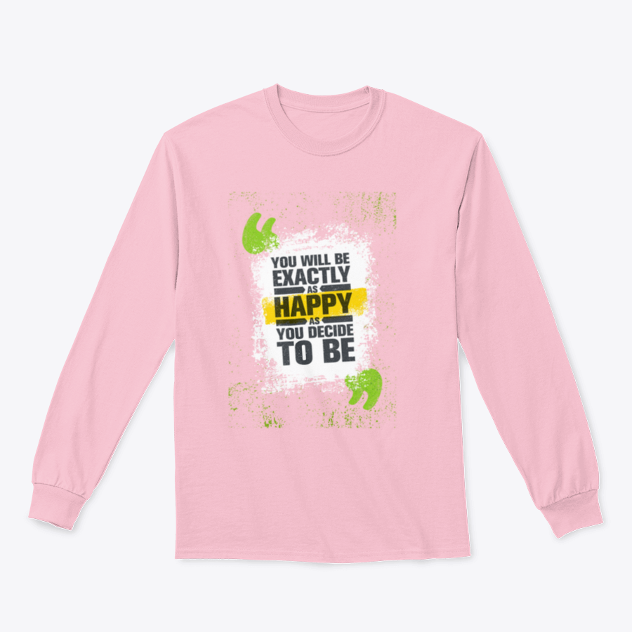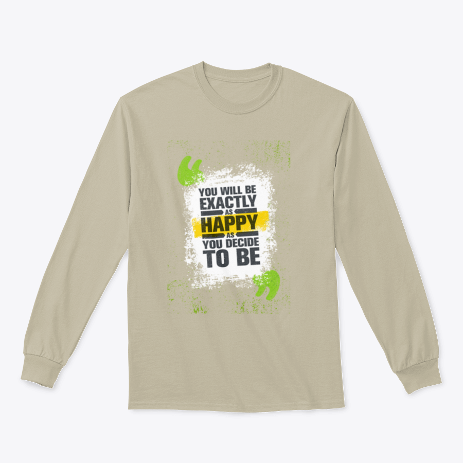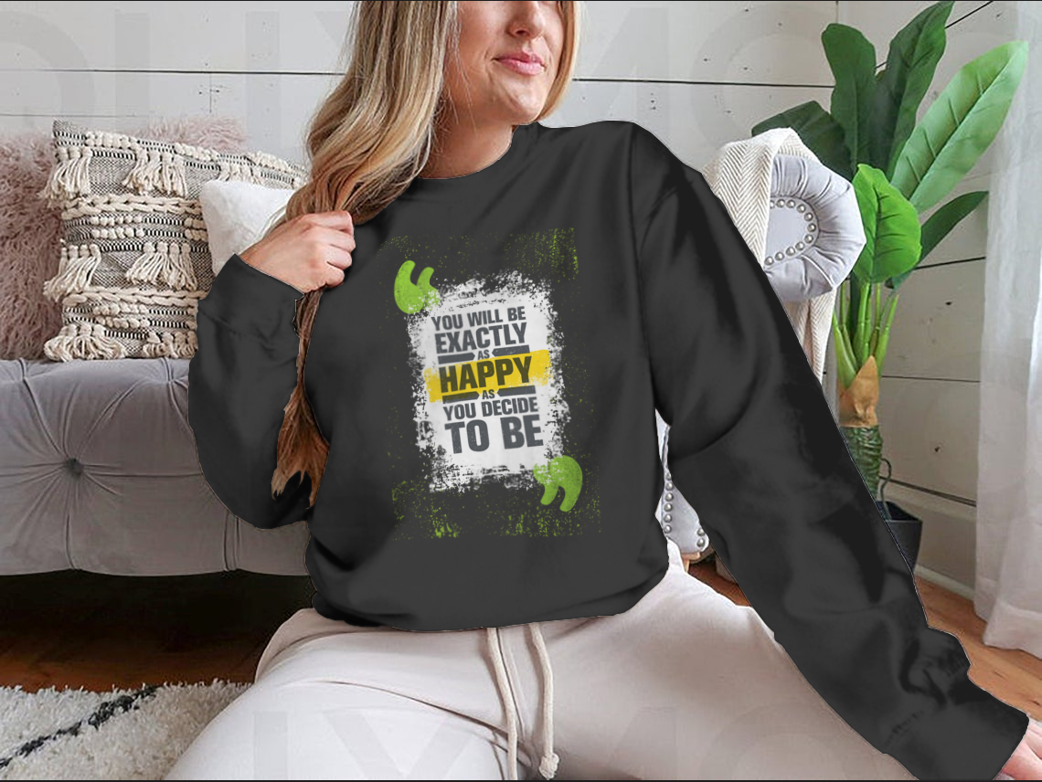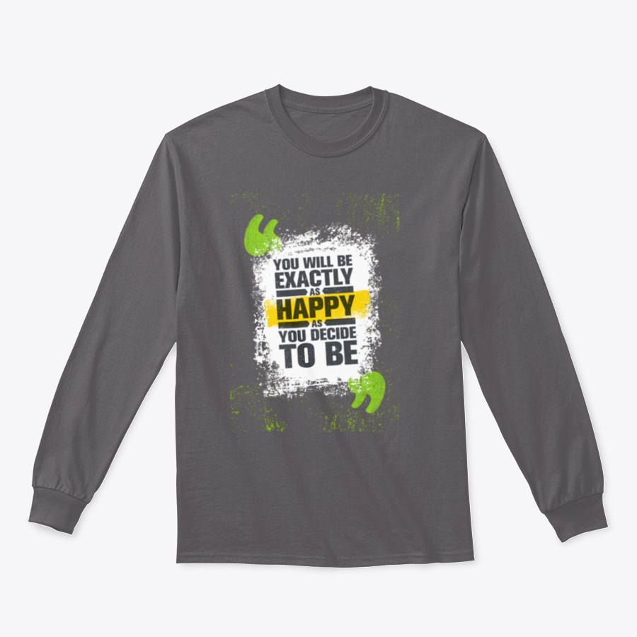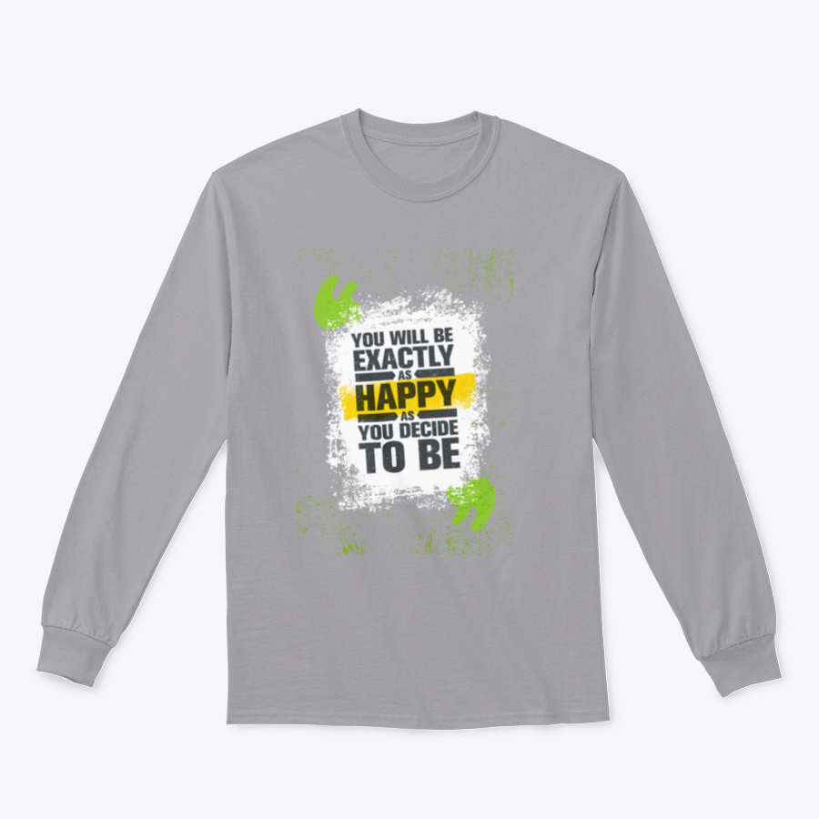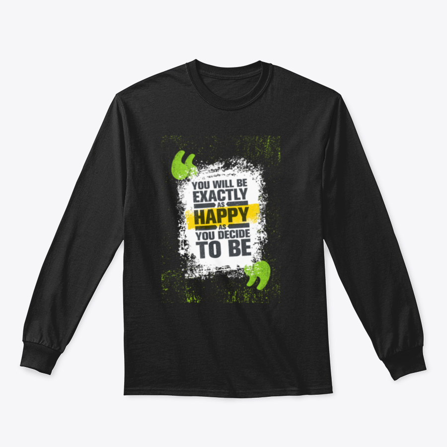 In summary, our 'You Will Be Exactly As Happy As You Decide To Be' inspirational quote apparel is not just a piece of clothing; it's a statement of positivity and motivation. With its high-quality materials, classic fit, and thoughtful design features, it's the perfect addition to any wardrobe. Embrace happiness and inspire others with this unique apparel!
