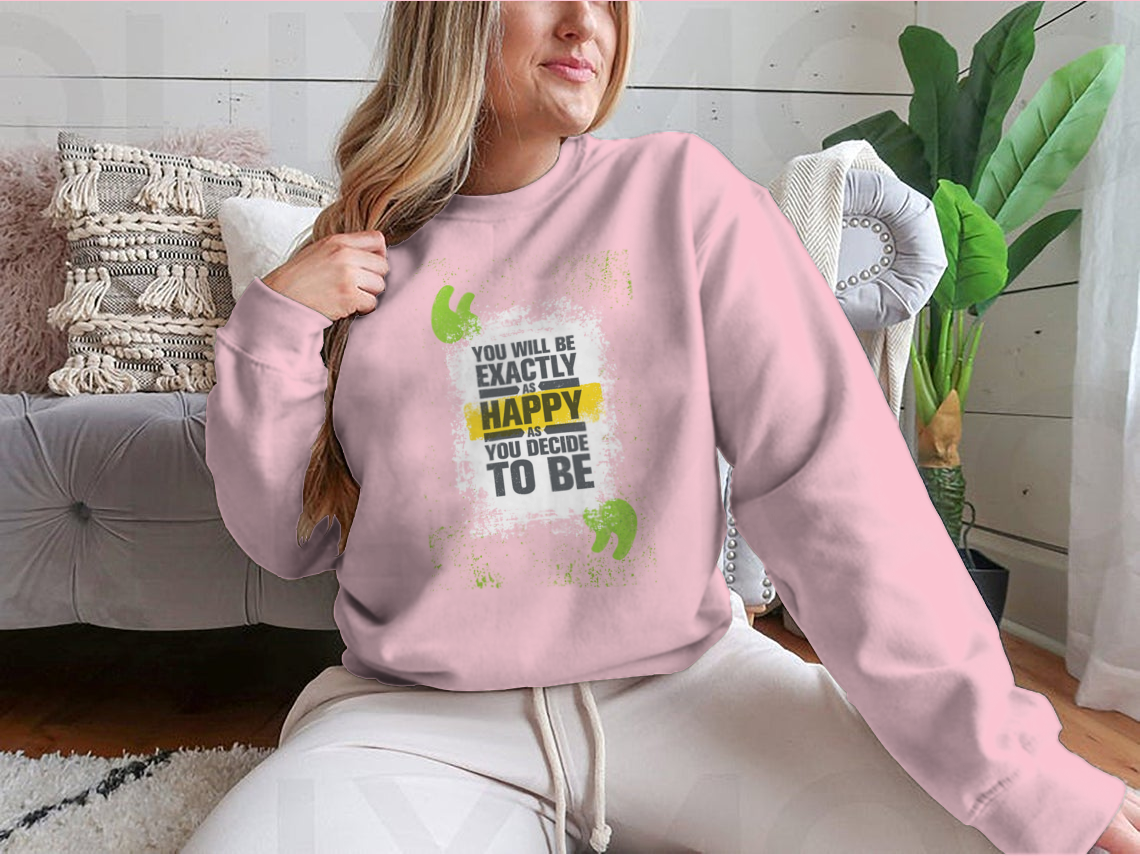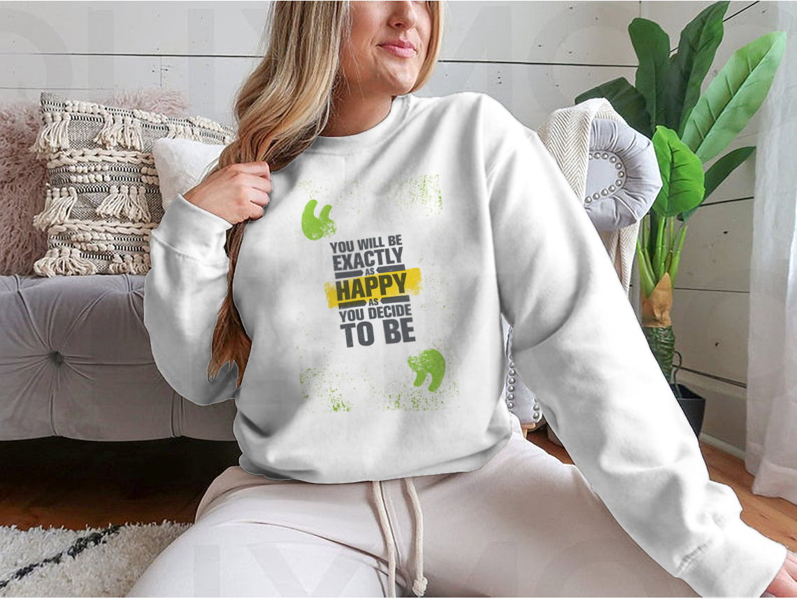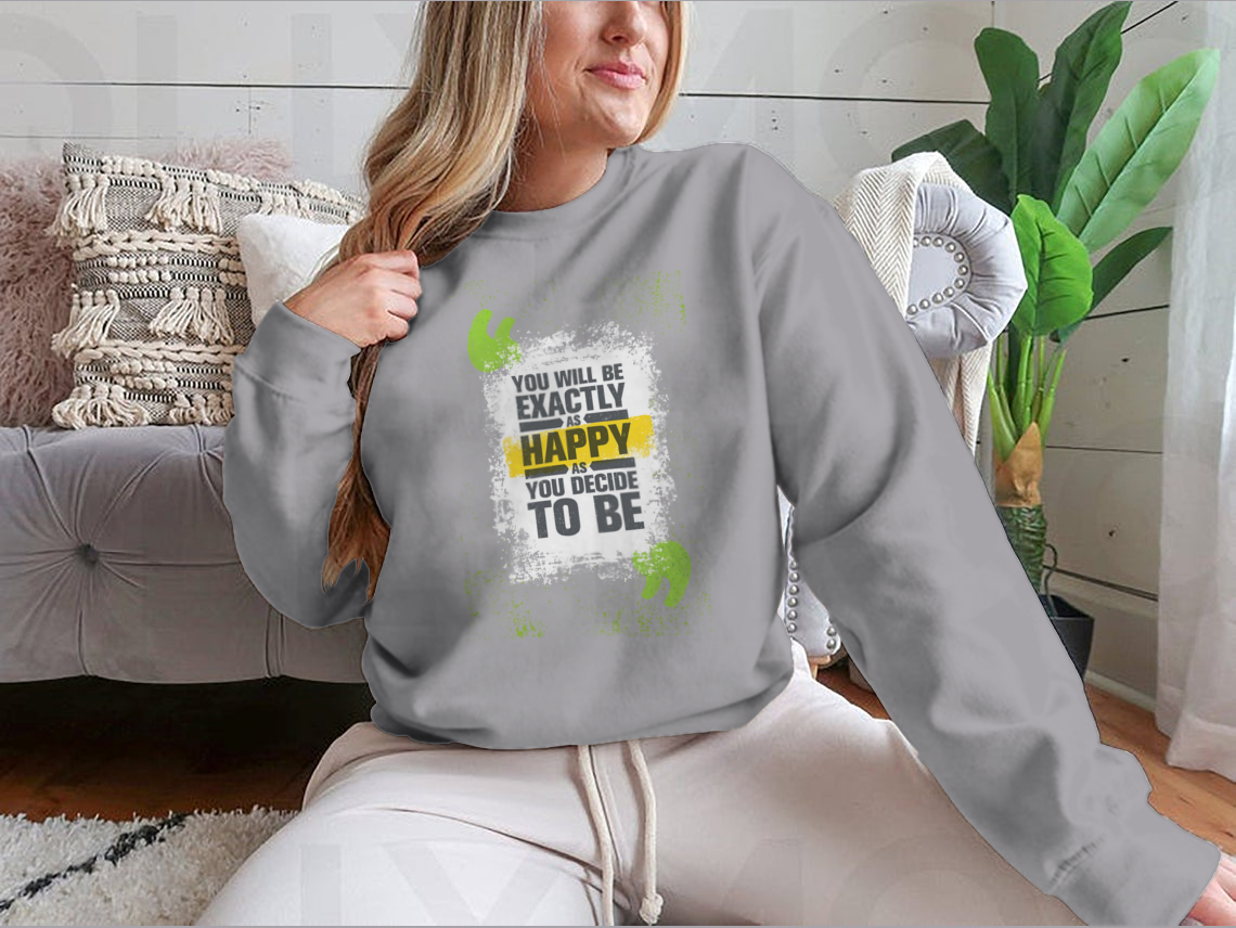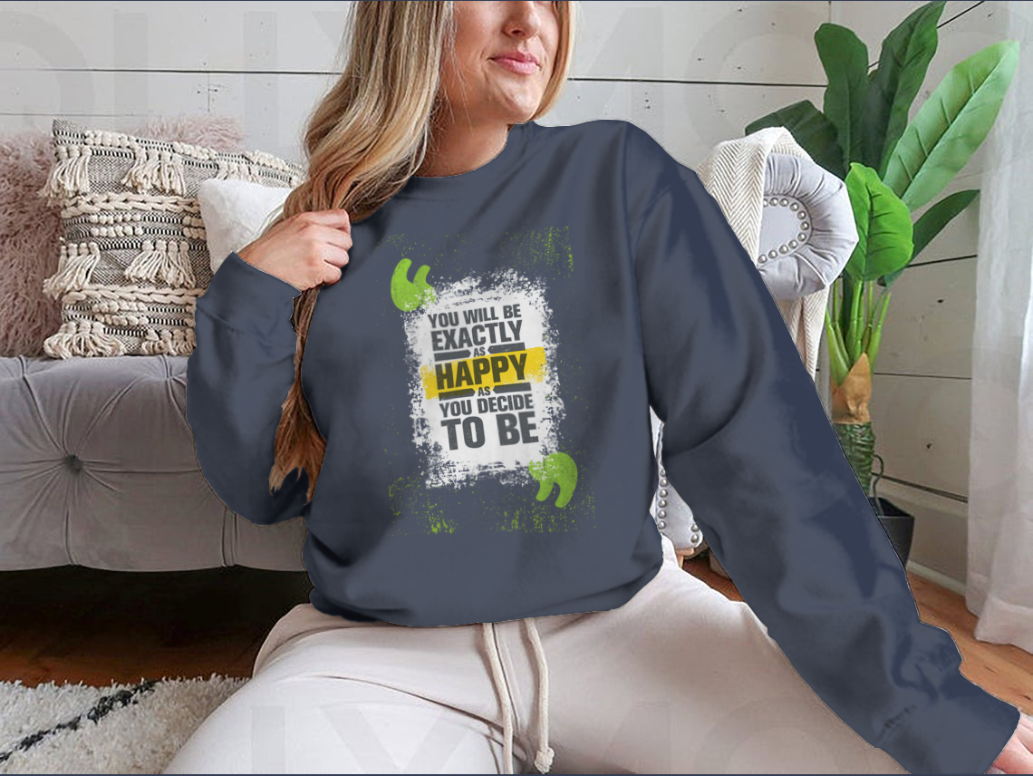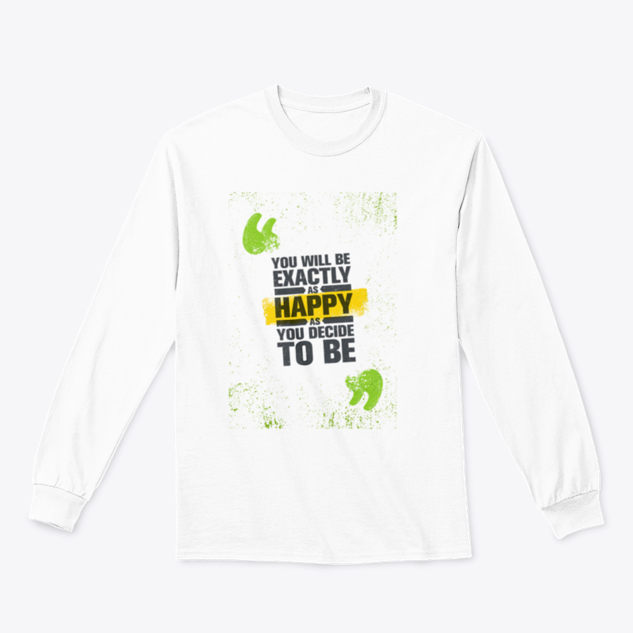 In summary, our 'You Will Be Exactly As Happy As You Decide To Be' inspirational quote apparel is not just a piece of clothing; it's a statement of positivity and motivation. With its high-quality materials, classic fit, and thoughtful design features, it's the perfect addition to any wardrobe. Embrace happiness and inspire others with this unique apparel!