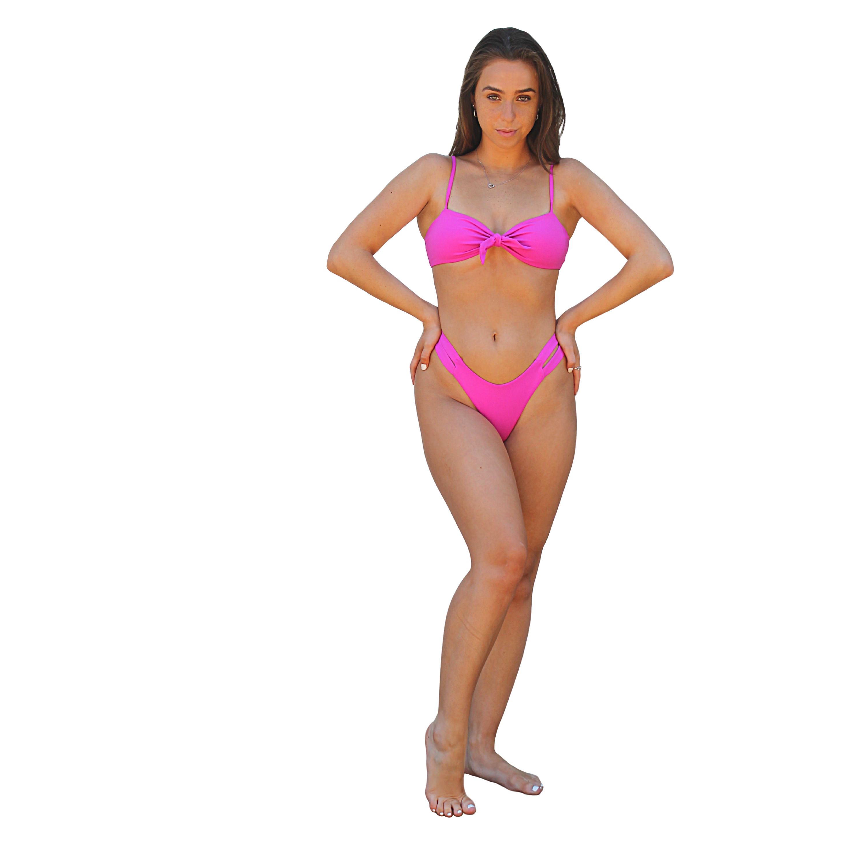 The hot pink color of the Emília Bikini Bottom makes it easy to pair with various bikini tops. Whether you prefer a matching hot pink top or a contrasting color, this bikini bottom will elevate your beach look. Accessorize with a wide-brimmed hat and oversized sunglasses for a chic summer vibe.