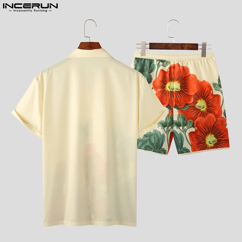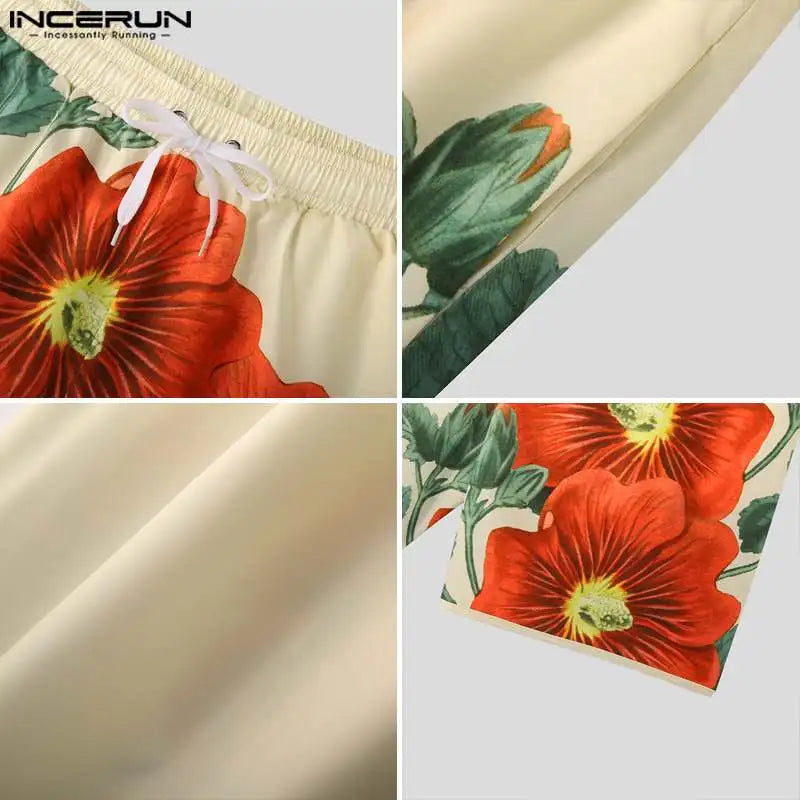 Introducing the Flower Style Men Beach Short Set by INCERUN, a perfect blend of style and comfort for your summer wardrobe. This casual set features a vibrant flower print that is sure to turn heads at the beach or during casual outings. Made from a high-quality blend of 95% polyester and 5% spandex, this set offers both durability and stretch, ensuring a comfortable fit for all-day wear.