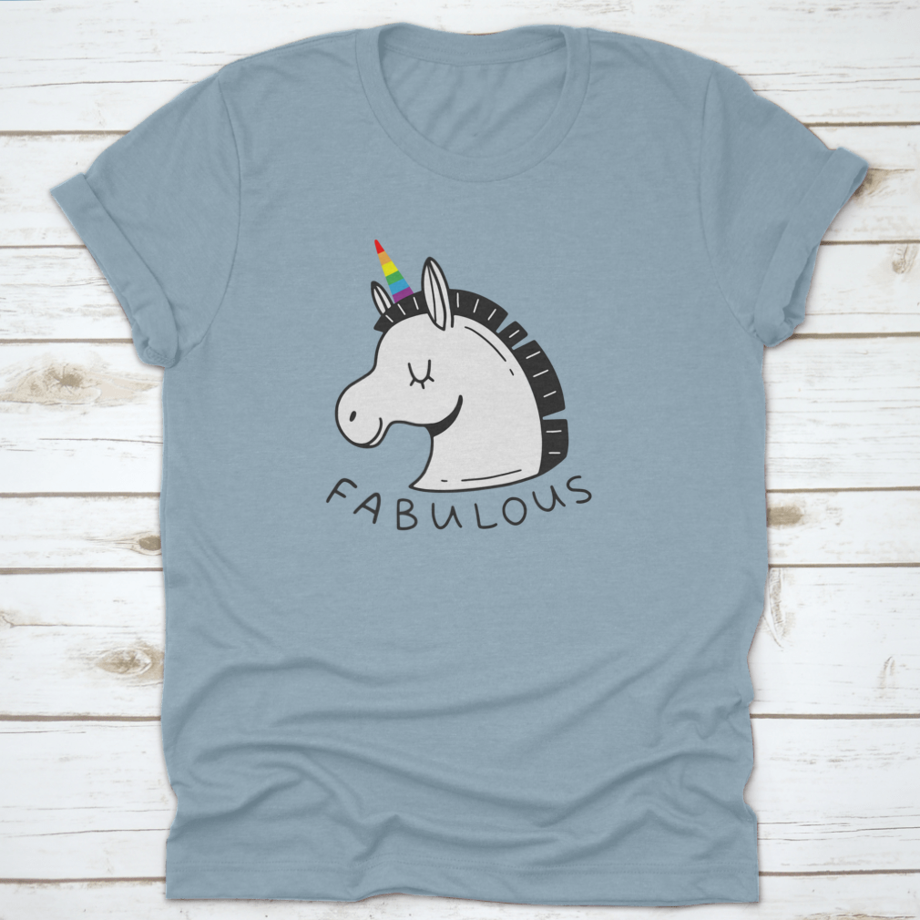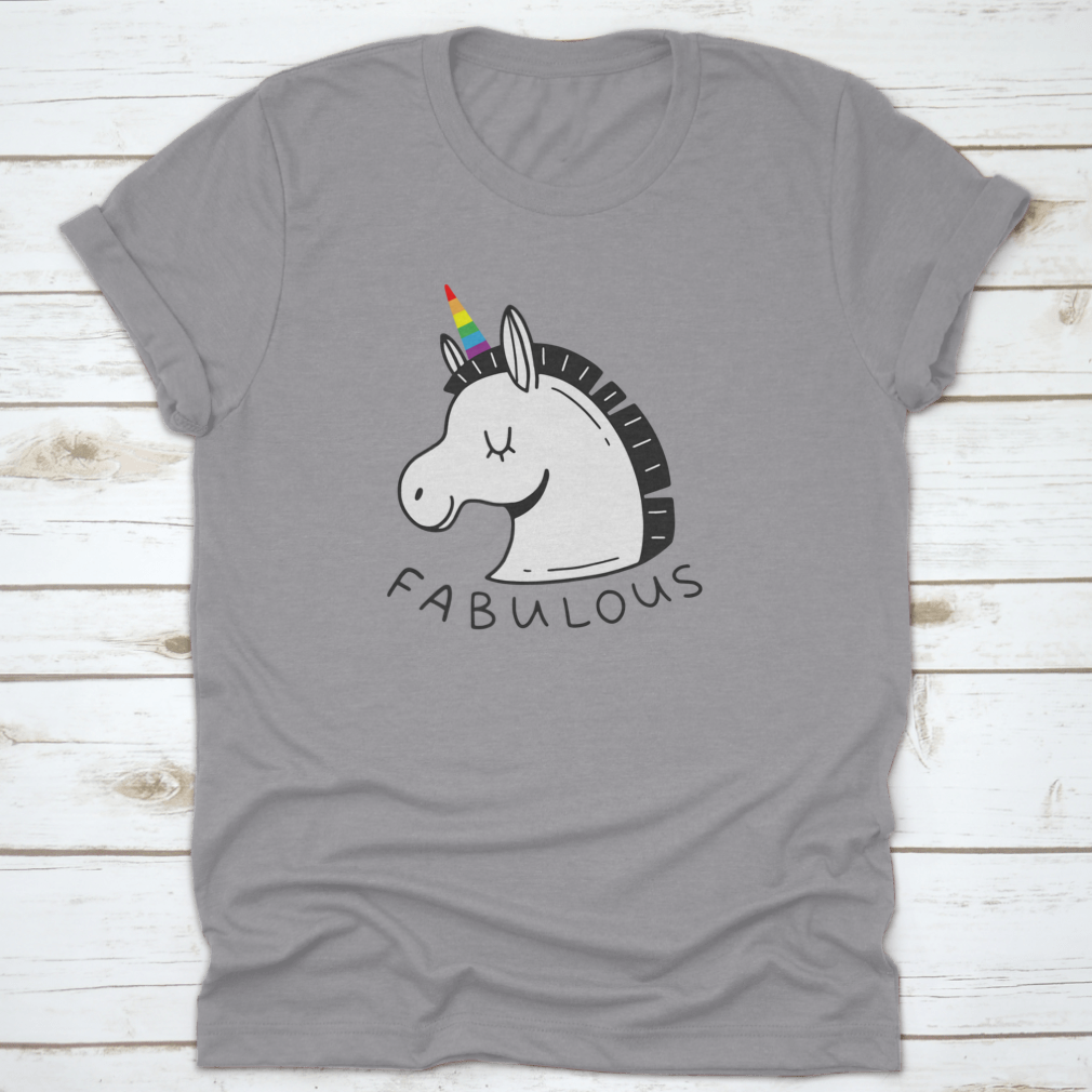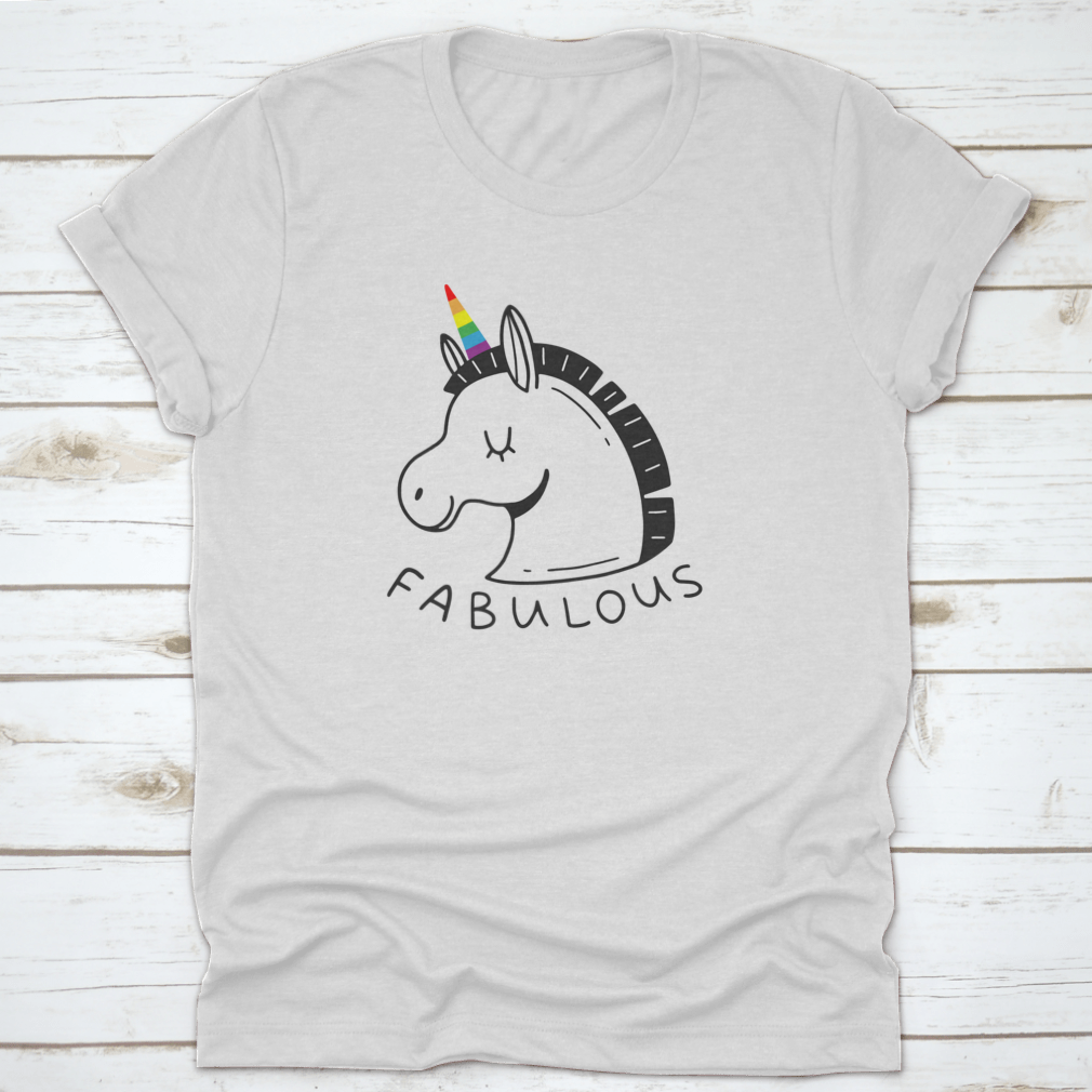 Introducing our unique Unicorn T-shirt, a perfect blend of style and pride! This fabulous tee features a stunning unicorn with an LGBT rainbow horn and the word 'Fabulous' in a playful doodle design. Made for those who want to express their individuality and support for the LGBTQ+ community, this shirt is not just a piece of clothing; it's a statement.