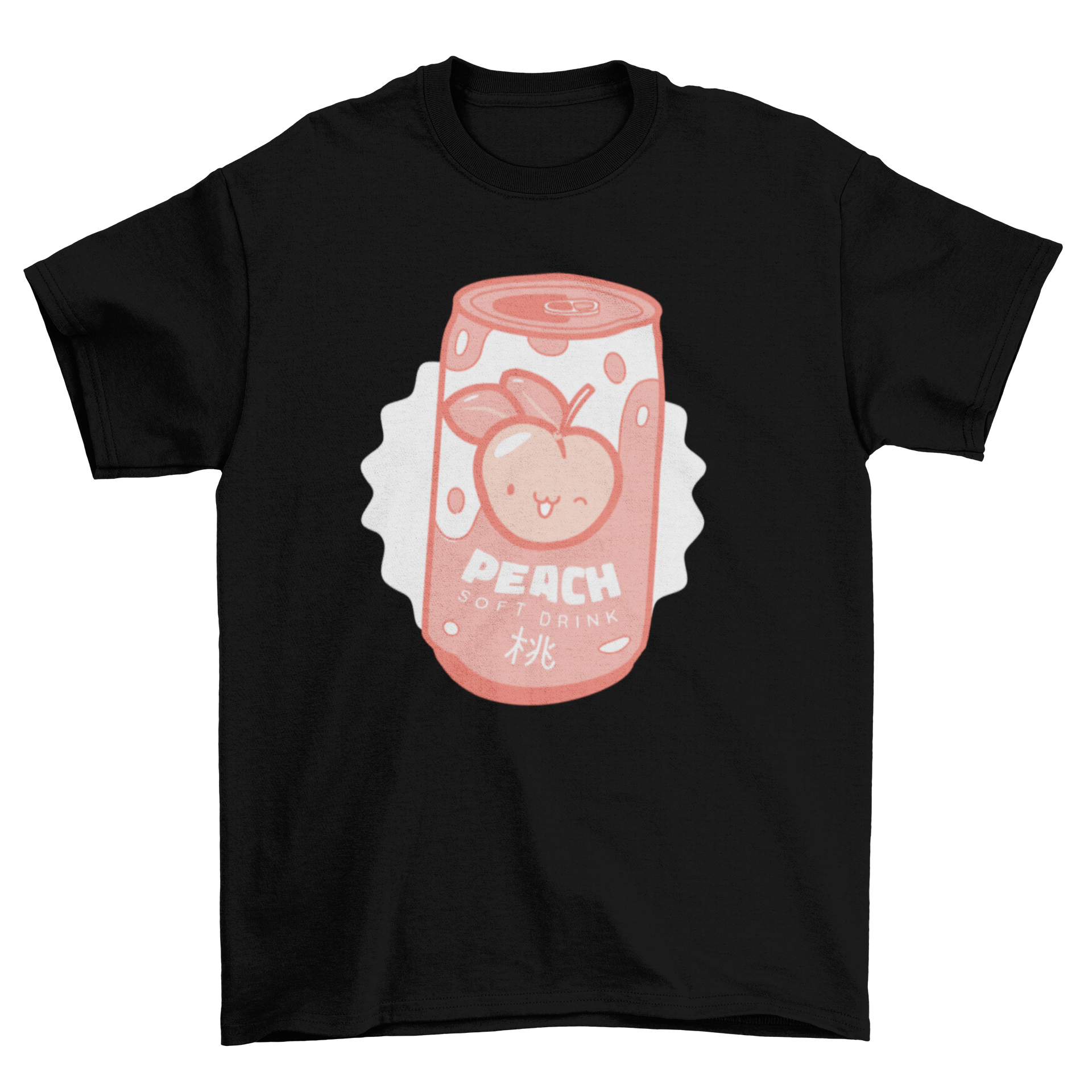 Introducing our Adorable Cute Can Pastel Peach Kawaii Japanese Kanji Soda Fruit Soft t-shirt, a delightful addition to any wardrobe. This unique t-shirt features a charming design that showcases a peach-flavored soda can, complete with an adorable kawaii peach character and stylish Japanese kanji. Perfect for those who appreciate cute and whimsical fashion, this t-shirt is sure to turn heads and spark conversations.