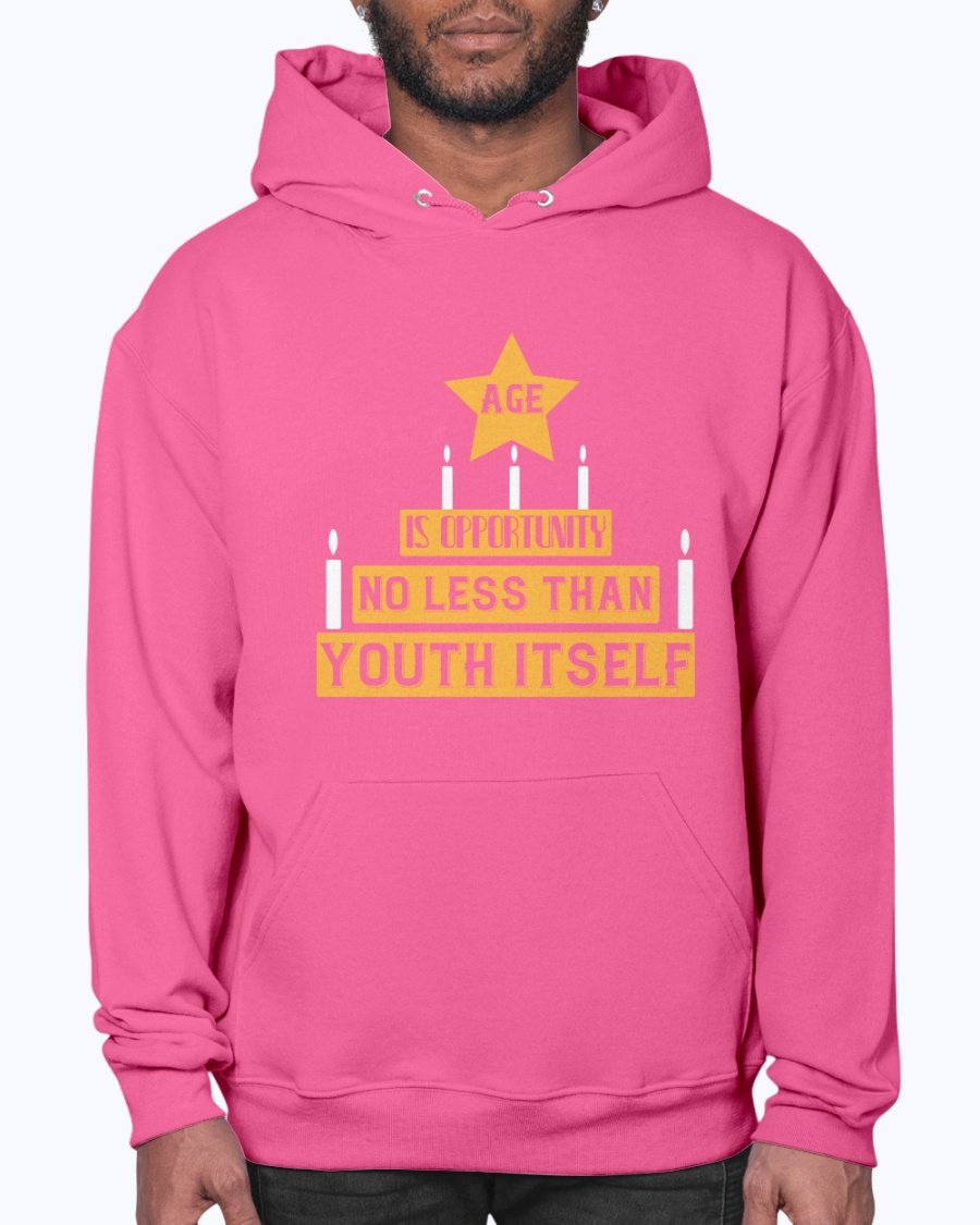 Introducing the 'Age is Opportunity No Less Than Youth Itself' Birthday Hoodie, a perfect blend of style and comfort designed for all ages. This hoodie is not just a piece of clothing; it’s a statement that celebrates life at every stage. Whether you’re gifting it for a birthday or treating yourself, this hoodie is a fantastic way to embrace the joy of aging.