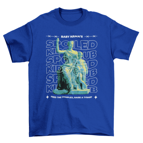 Introducing our Amazing Trap Character Quote t-shirt design, a perfect blend of creativity and style. This t-shirt features the catchy quote 'Spoiled Kids Club' alongside a stunning statue depicted in a photographic style. Ideal for those who appreciate unique fashion statements, this t-shirt is not just a piece of clothing; it's a conversation starter.