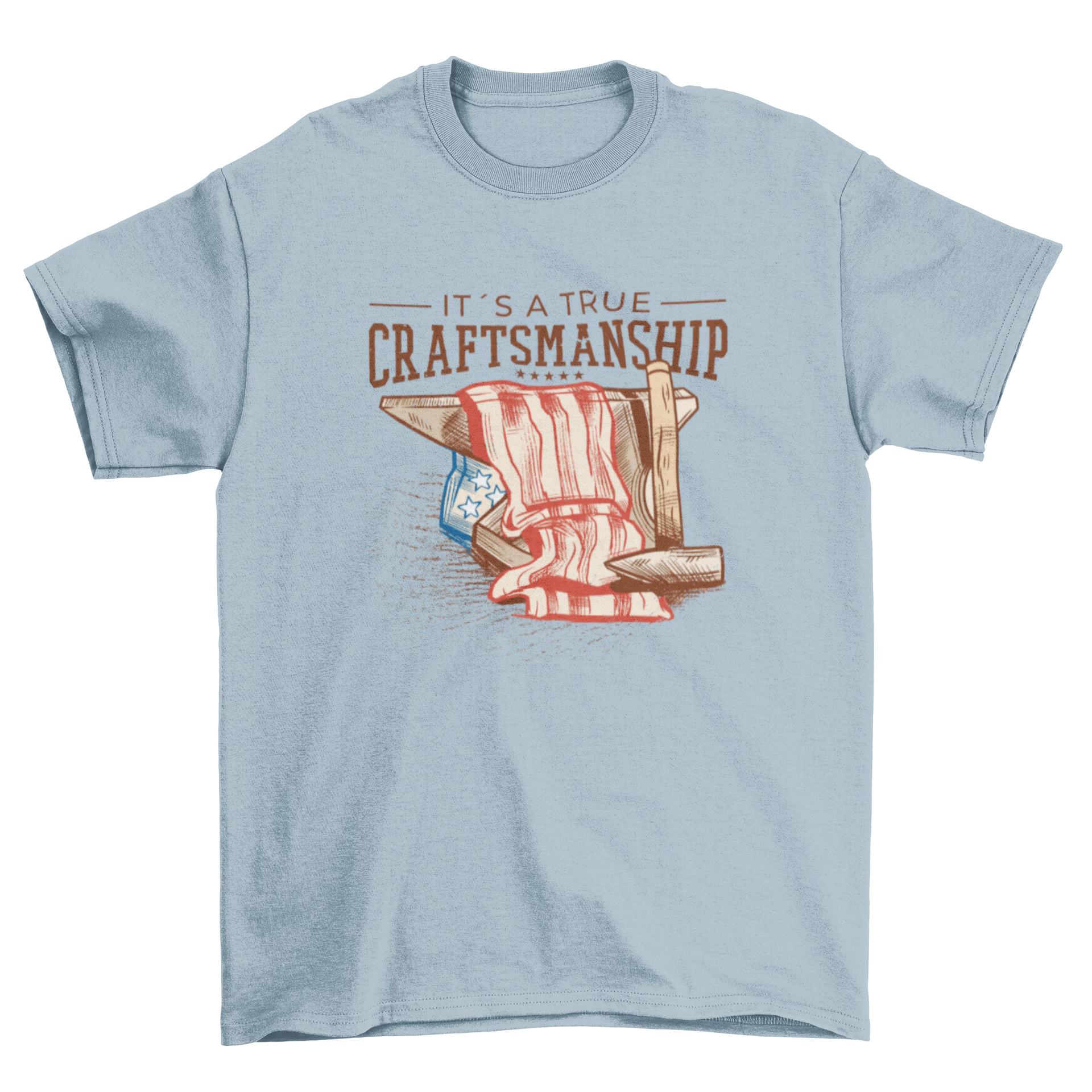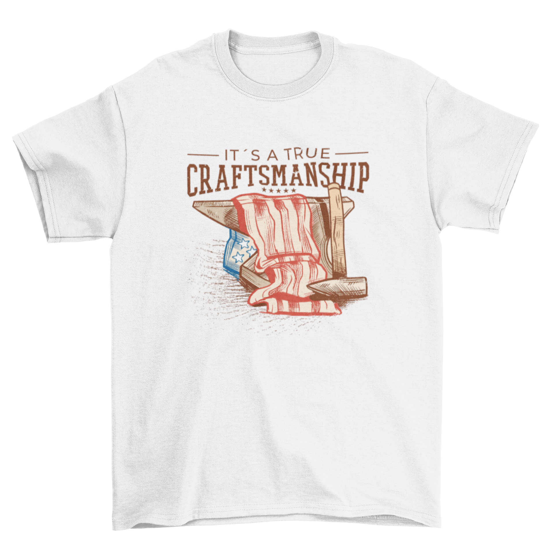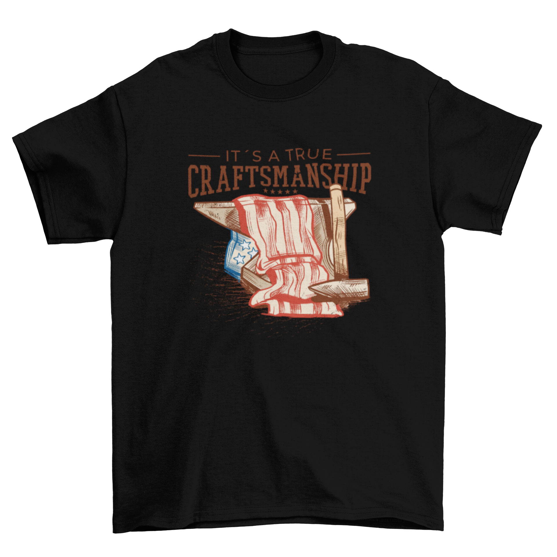 American flag craftsmanship t-shirt featuring an anvil and hammer design with the quote 'It's a true craftsmanship'.