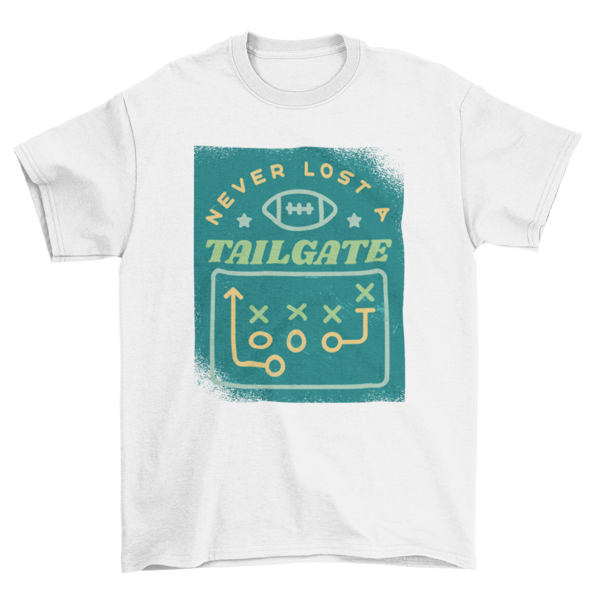 Introducing our American football sport t-shirt, a must-have for any football enthusiast! This amazing t-shirt features a unique design that showcases a diagram of football positions, making it not only stylish but also informative. The playful quote, "Never lost a tailgate," adds a fun twist that resonates with fans who love the tailgating experience before the big game.
