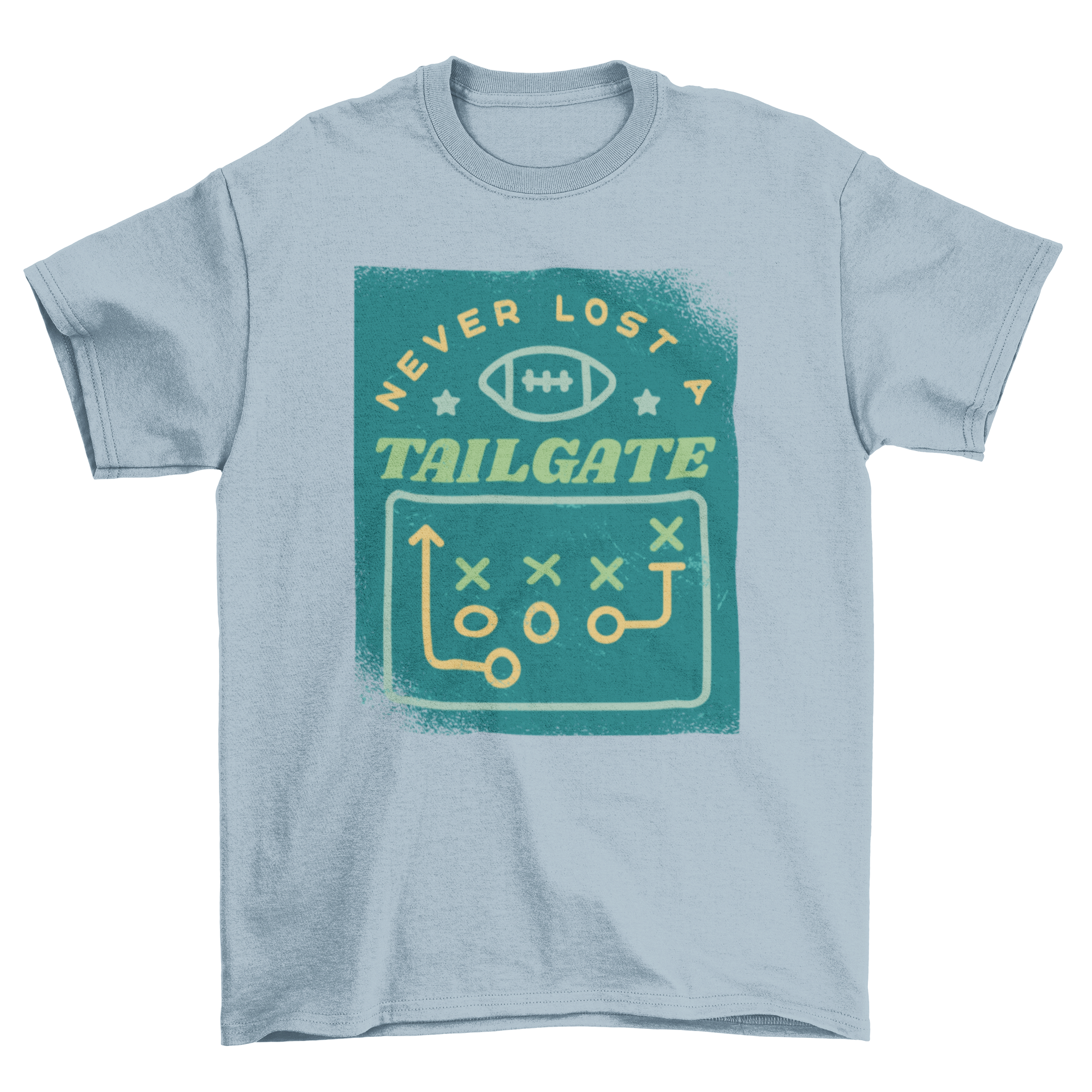The standout feature of this American football sport t-shirt is its eye-catching design. The diagram of football positions is not only a conversation starter but also a great way to show off your knowledge of the game. The quote, "Never lost a tailgate," is printed in bold letters, making it clear that you’re a true fan who knows how to enjoy the pre-game festivities.