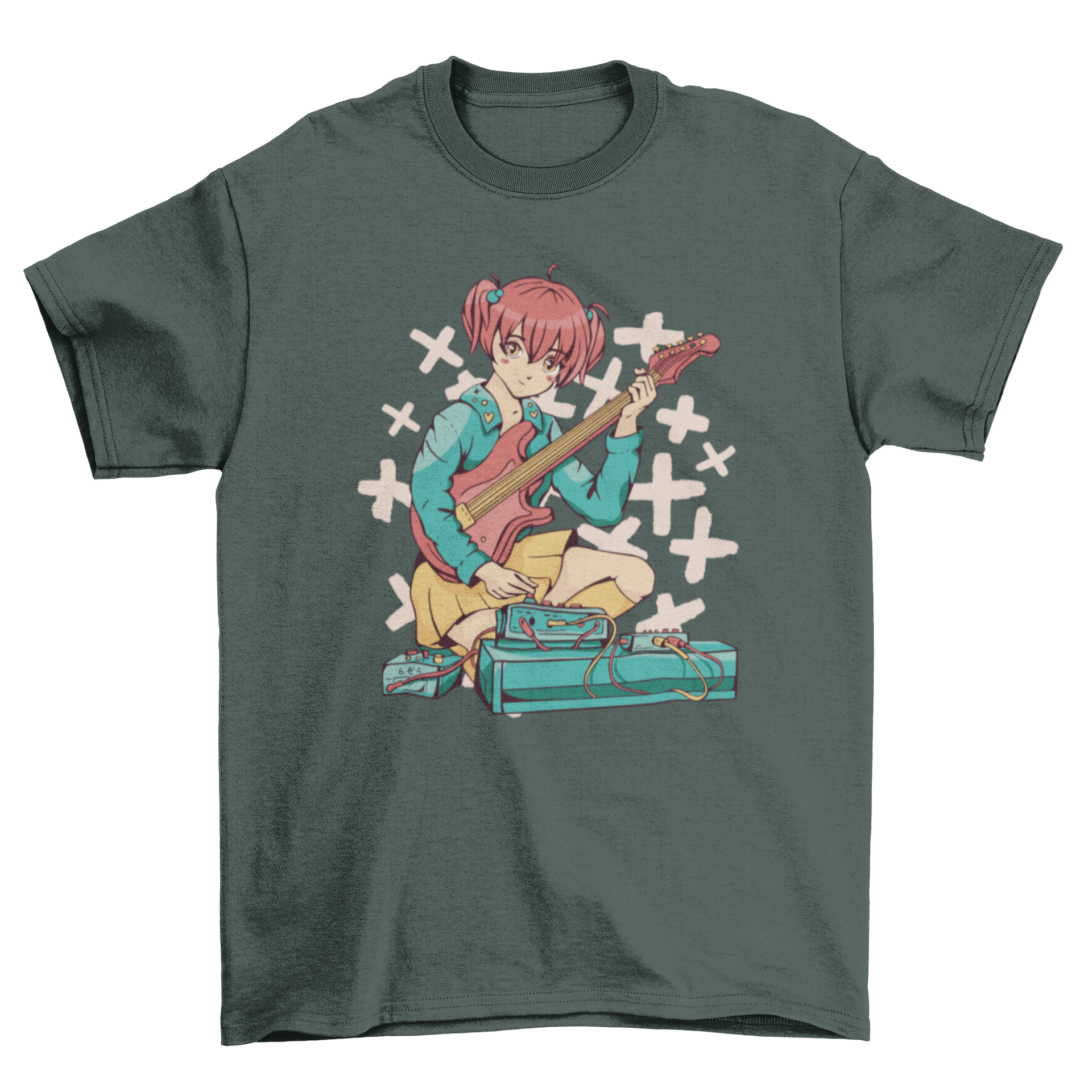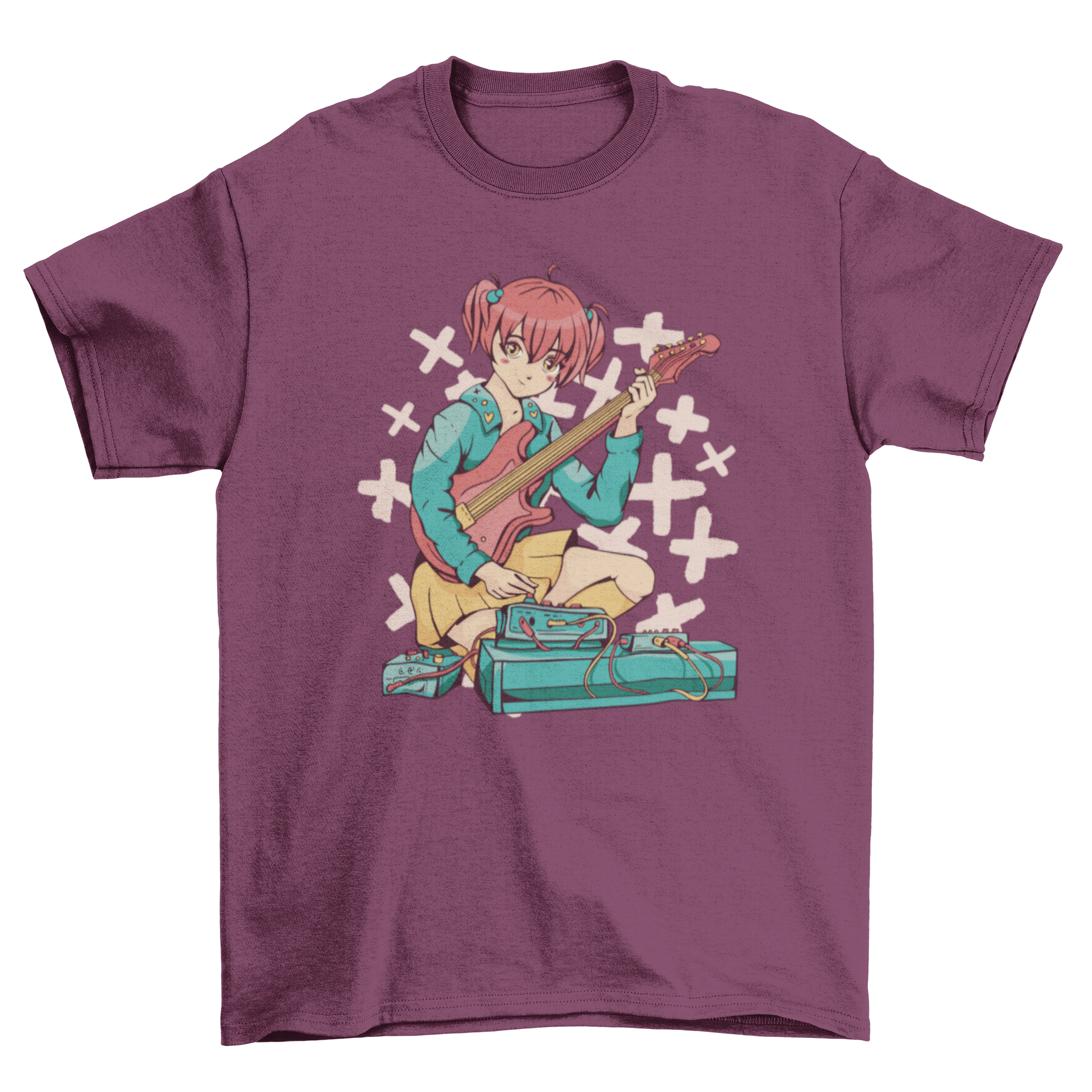 Introducing our Anime Girl Electric Guitar T-Shirt, a must-have for any anime and music enthusiast. This cool t-shirt design features a vibrant illustration of an anime girl passionately playing an electric guitar, making it a perfect blend of style and personality. Whether you're attending a concert, hanging out with friends, or just lounging at home, this t-shirt is sure to turn heads and spark conversations.