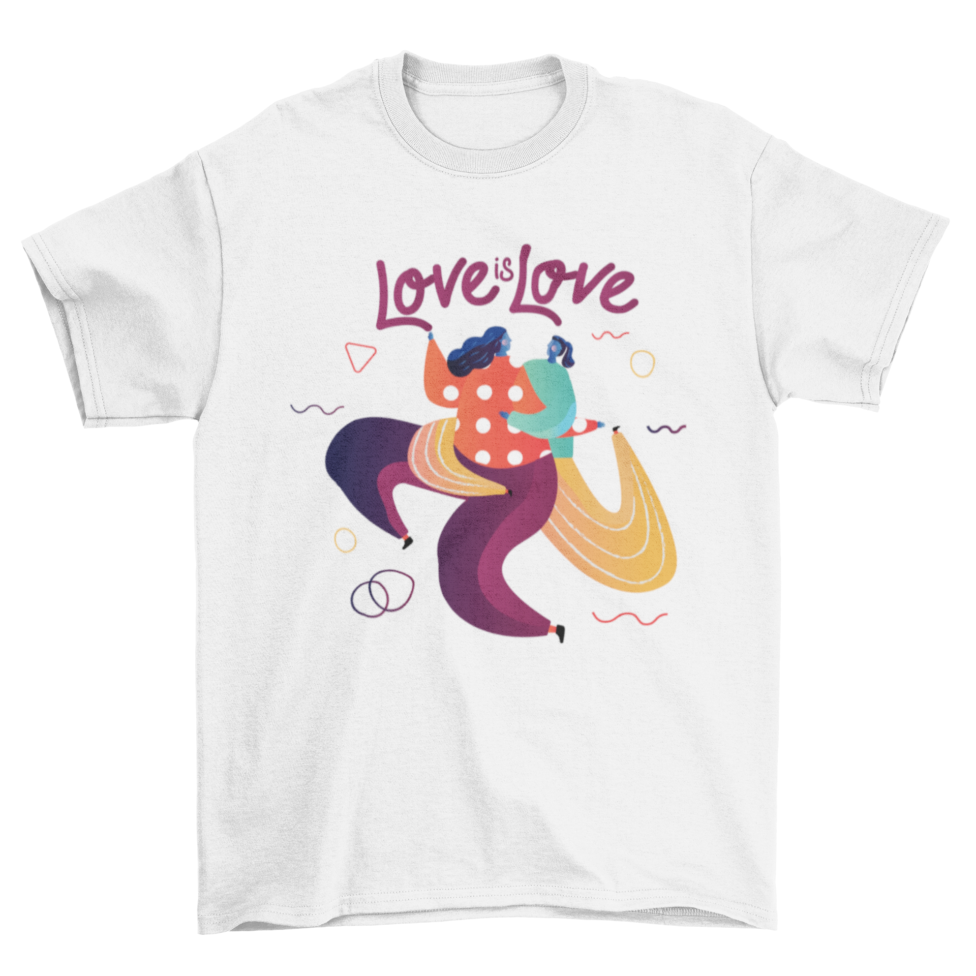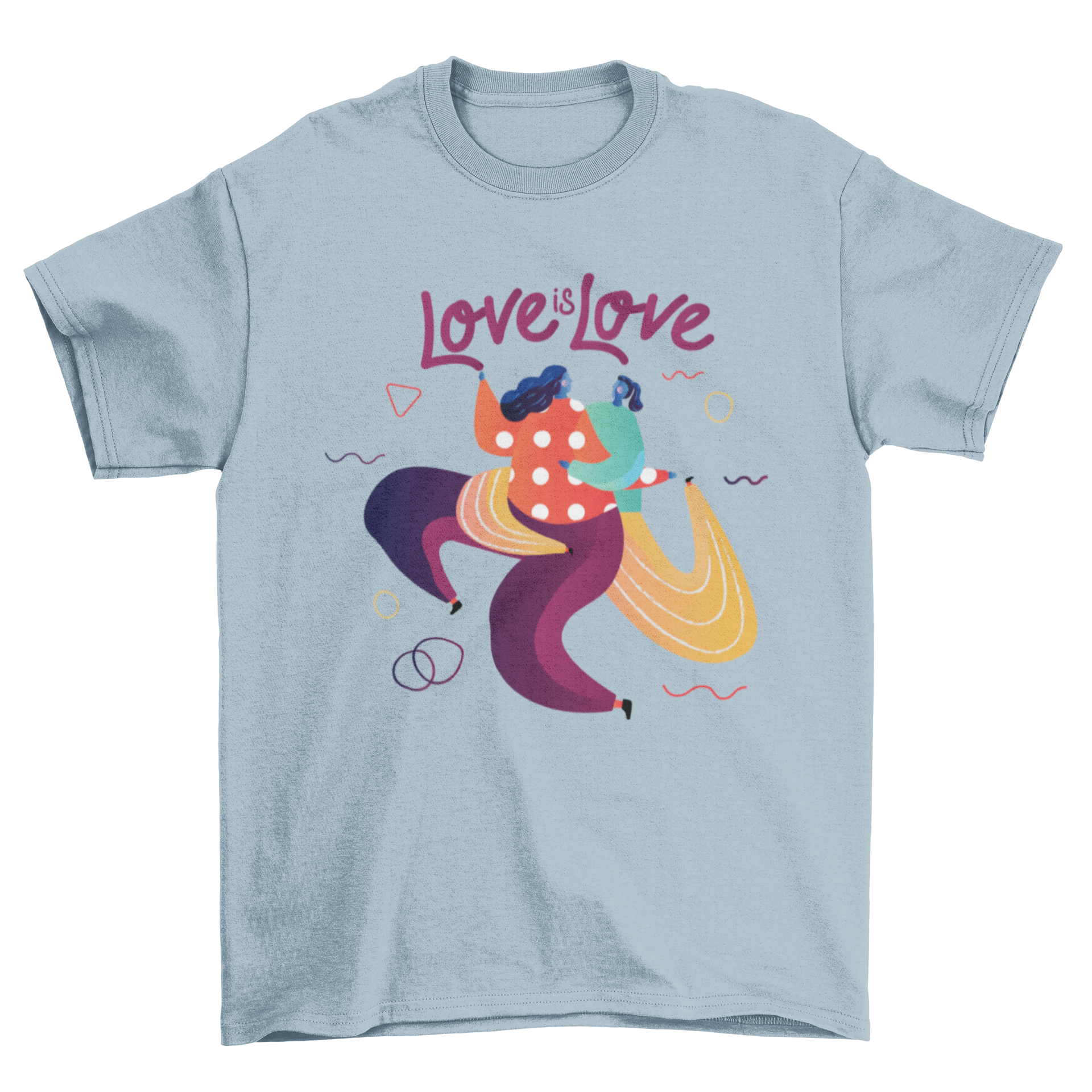 Celebrate love and diversity with our Artistic LGBT Fashion t-shirt, showcasing a beautiful design of two girls hugging each other, accompanied by the empowering phrase 'Love is Love'. This t-shirt is not just a piece of clothing; it is a statement of pride, acceptance, and support for the LGBT community. Whether you are attending a pride parade, a casual outing, or simply want to express your beliefs, this t-shirt is the perfect choice.