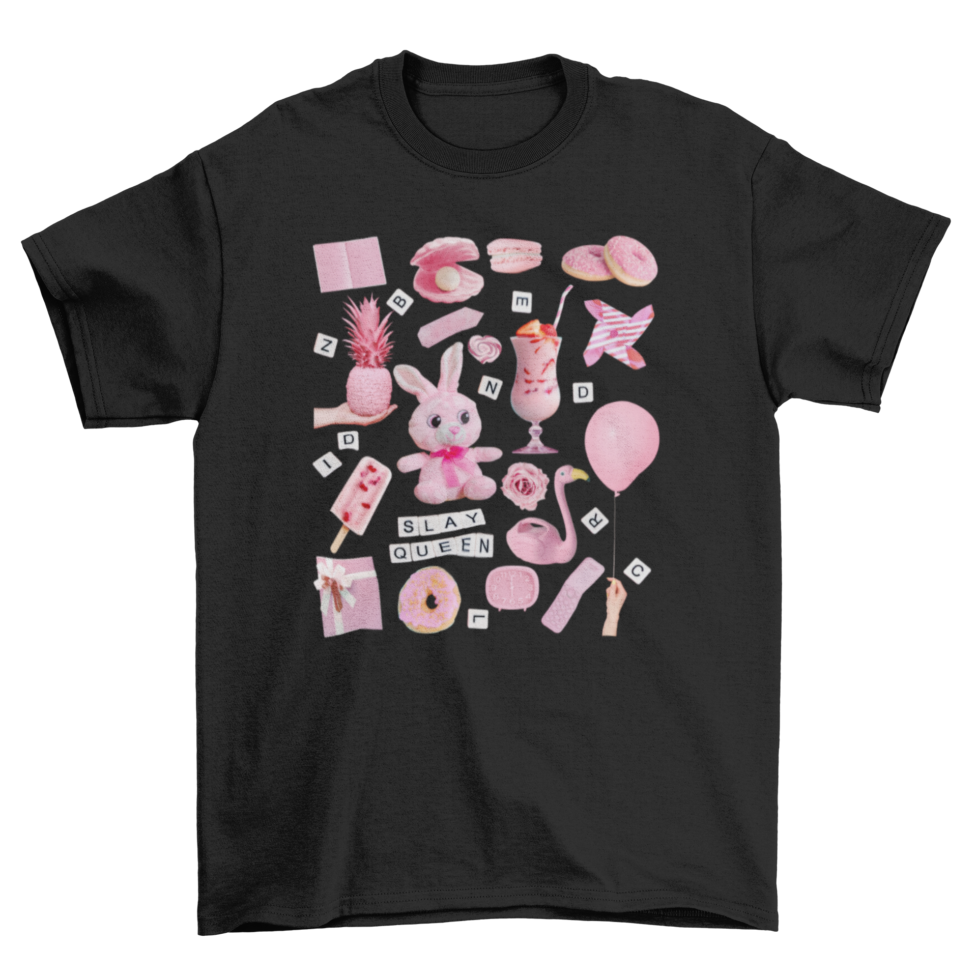 Introducing our Awesome Girl Fashion Pink Tones Elements Photographic Collage T-Shirt, a stunning addition to any woman's wardrobe. This t-shirt features a vibrant and stylish design that showcases a unique photographic collage in beautiful pink tones. Perfect for those who love to express their individuality through fashion, this t-shirt is not just a piece of clothing; it's a statement.