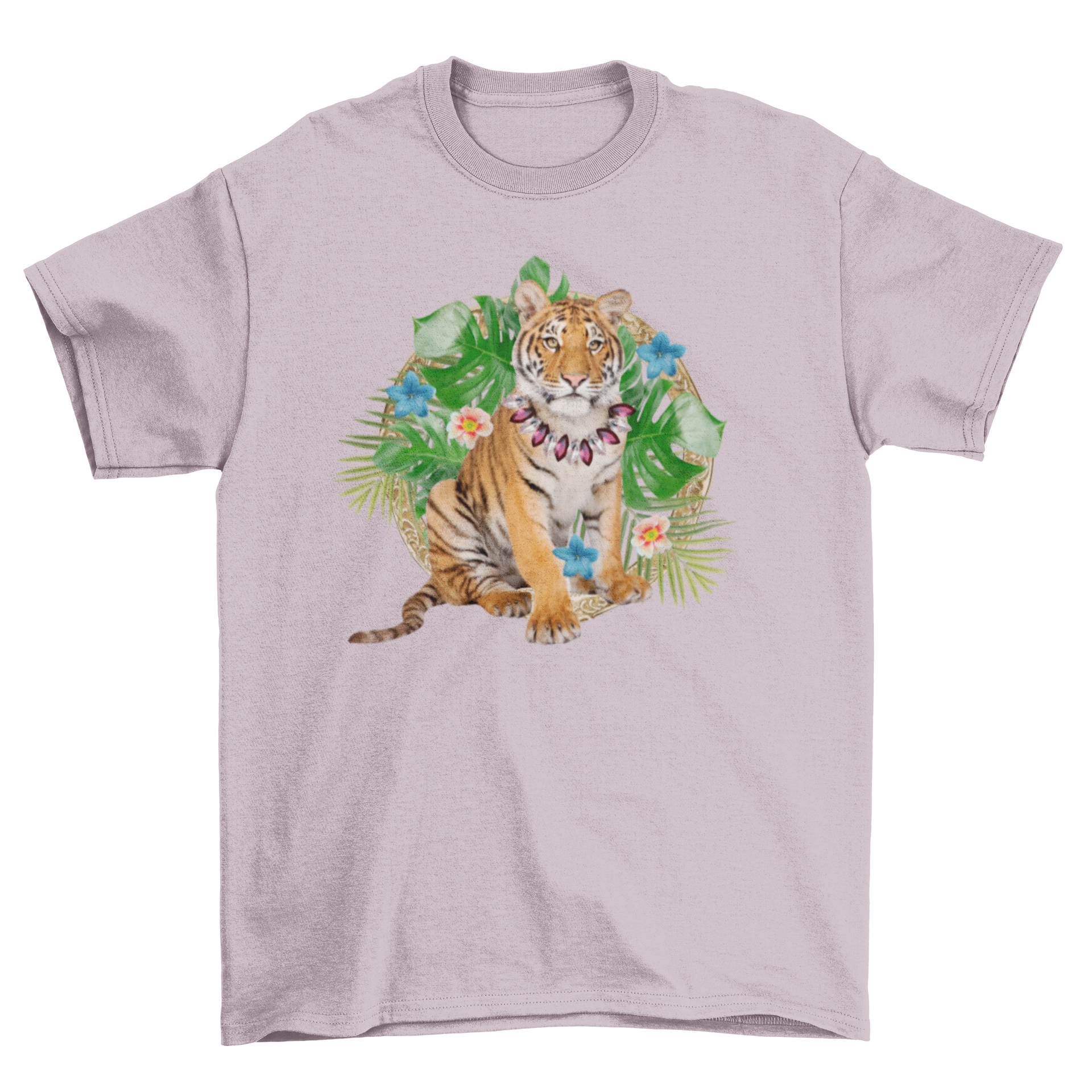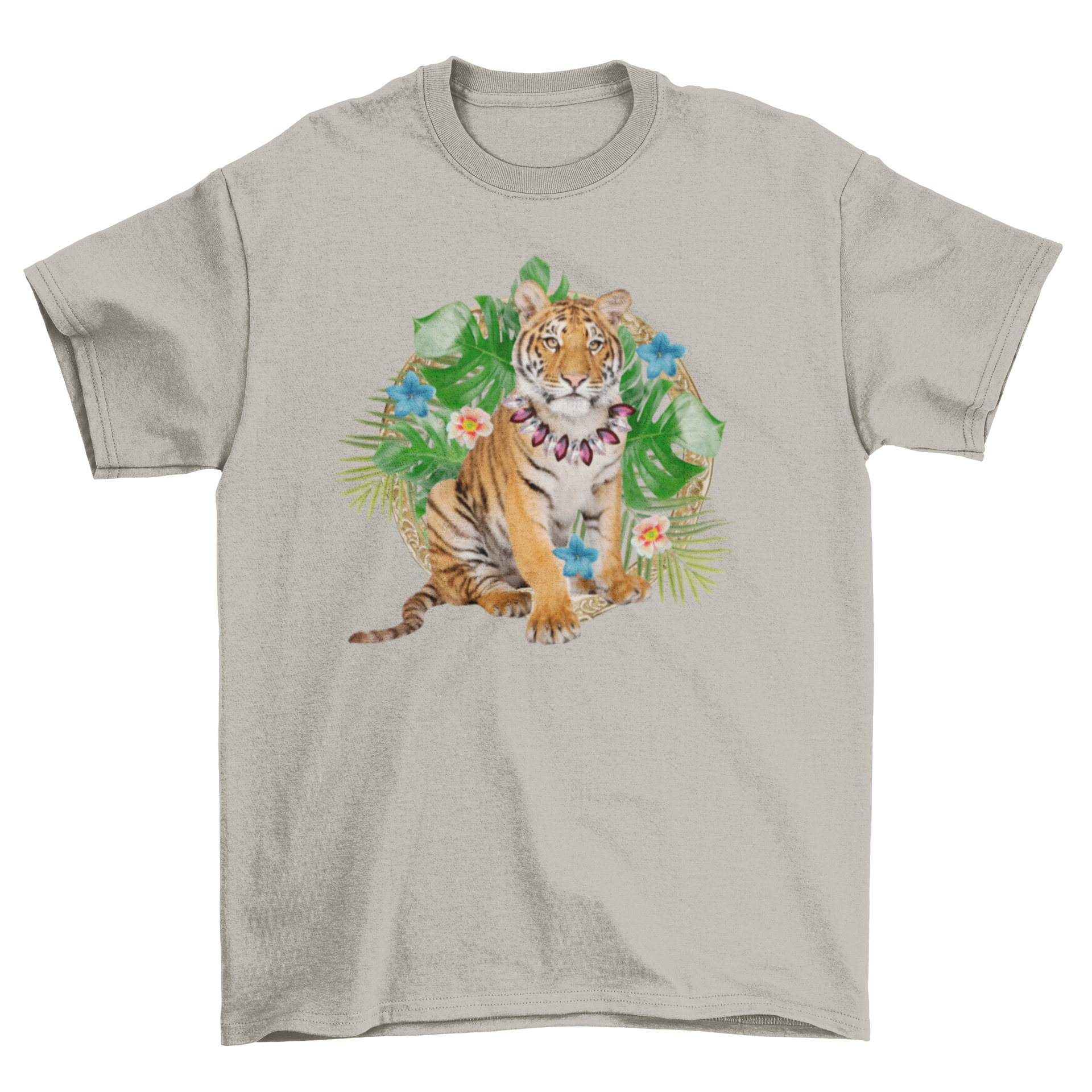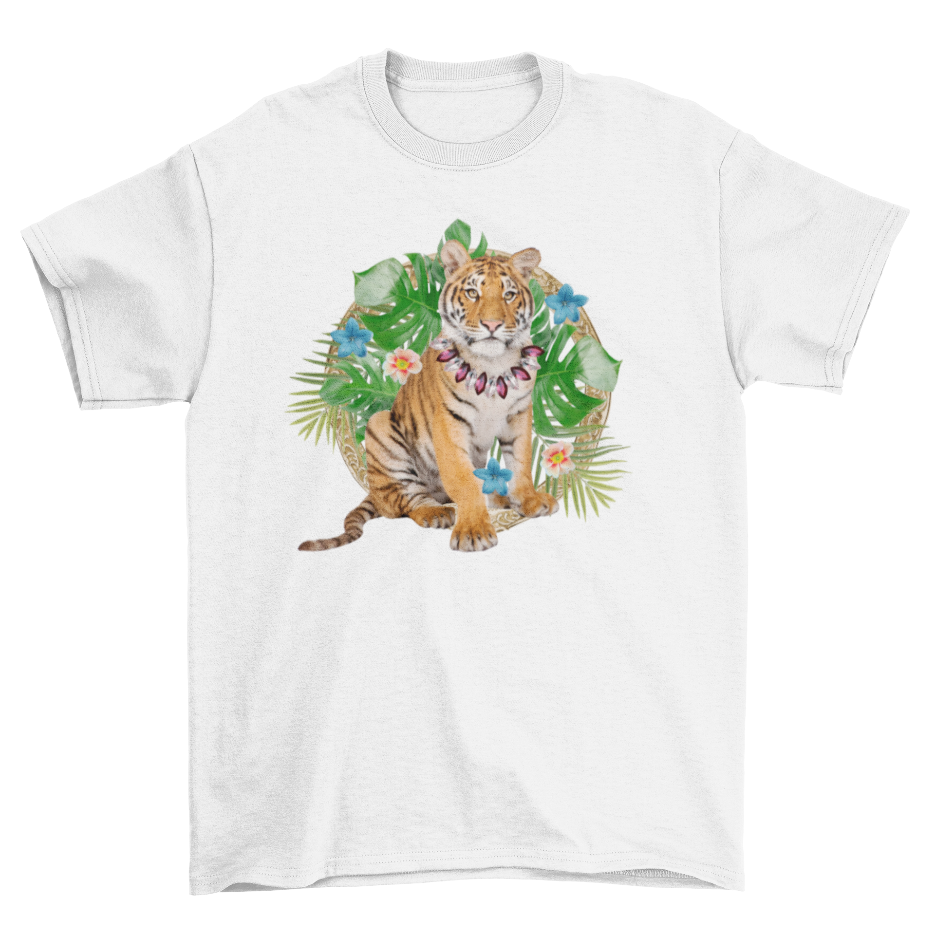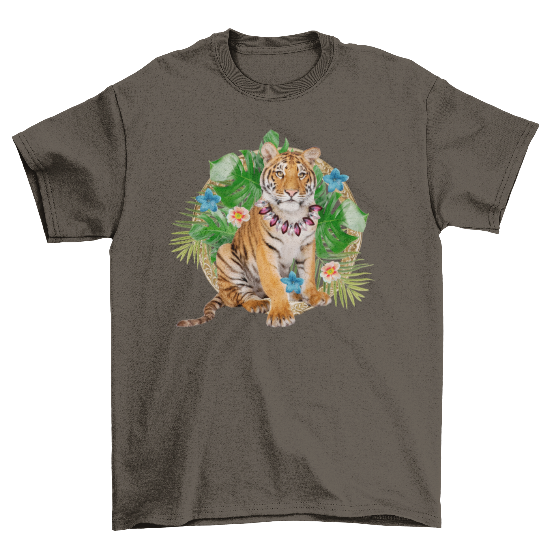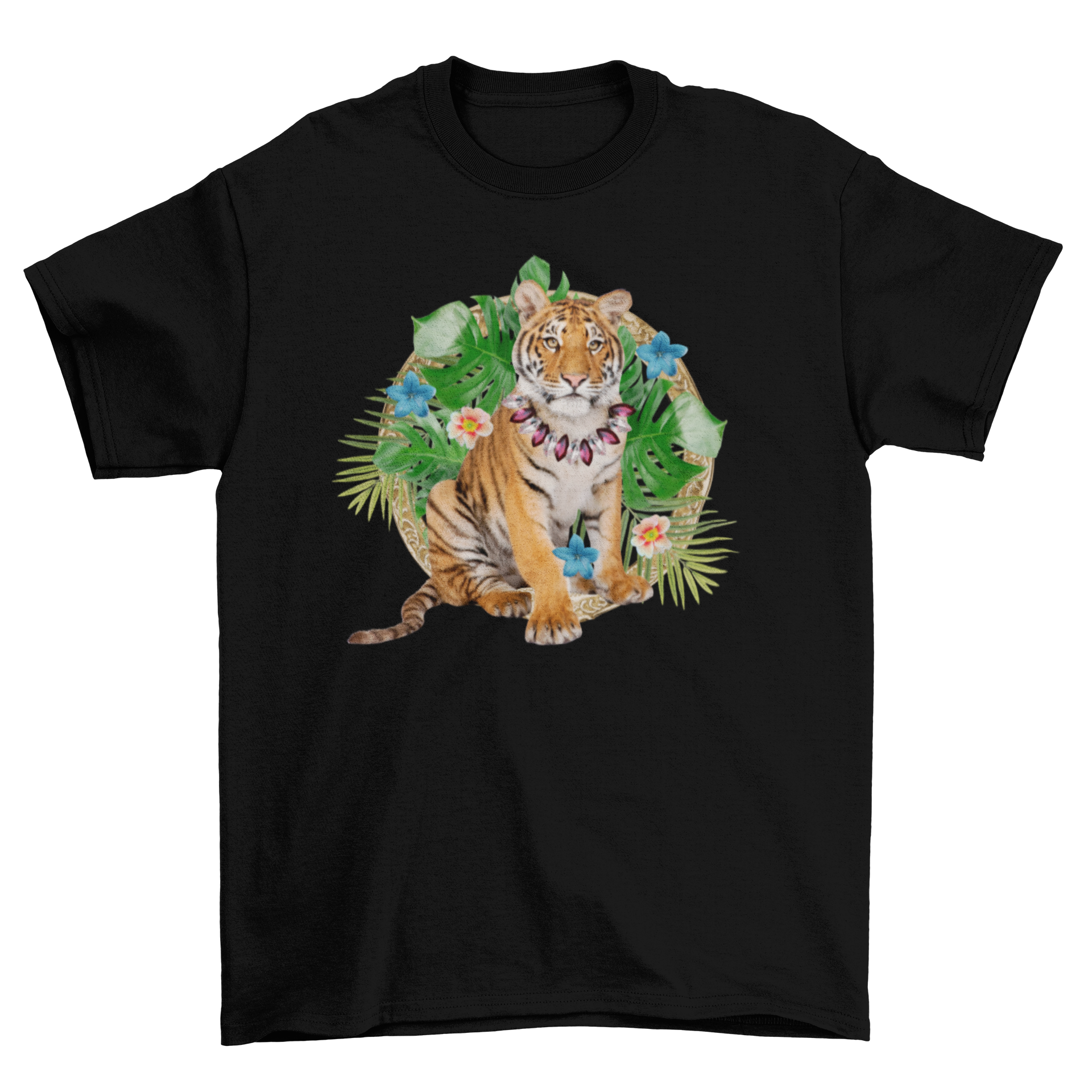 Introducing our charming Baby Tiger Animal T-Shirt, a delightful addition to any child's wardrobe. This unique t-shirt features an adorable baby tiger surrounded by a vibrant array of flowers and leaves, making it a perfect choice for nature enthusiasts and animal lovers alike. Crafted from high-quality materials, this t-shirt ensures comfort and durability, allowing your little one to play freely while looking stylish.