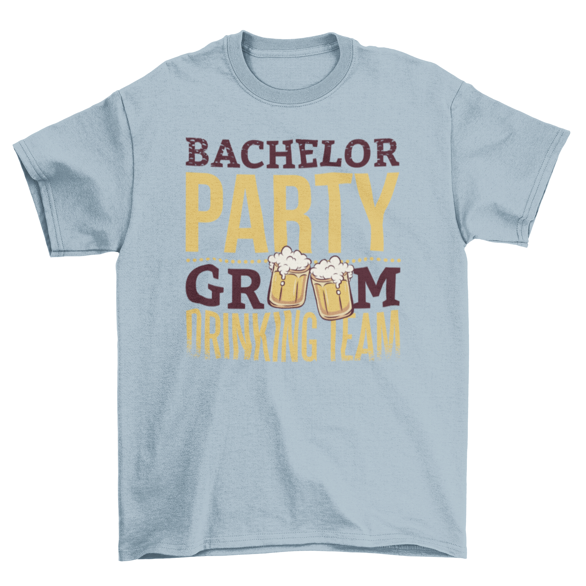 The standout feature of this t-shirt is its unique design. The eye-catching graphic of two beer pints symbolizes the fun and camaraderie of the bachelor party experience. The bold text 'Bachelor Party Groom Drinking Team' adds a humorous touch, making it a great conversation starter among friends and fellow party-goers. This t-shirt is not just clothing; it's a statement piece that celebrates friendship and the joy of the occasion.