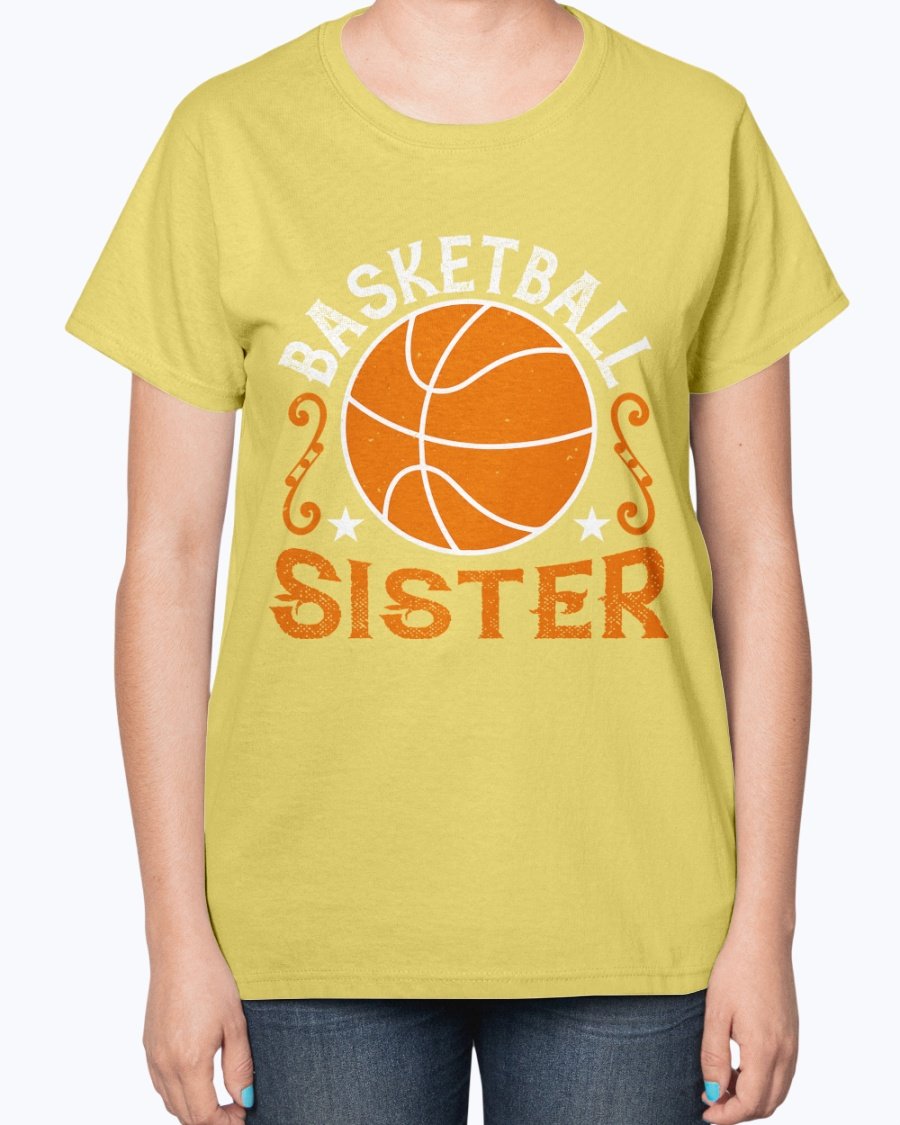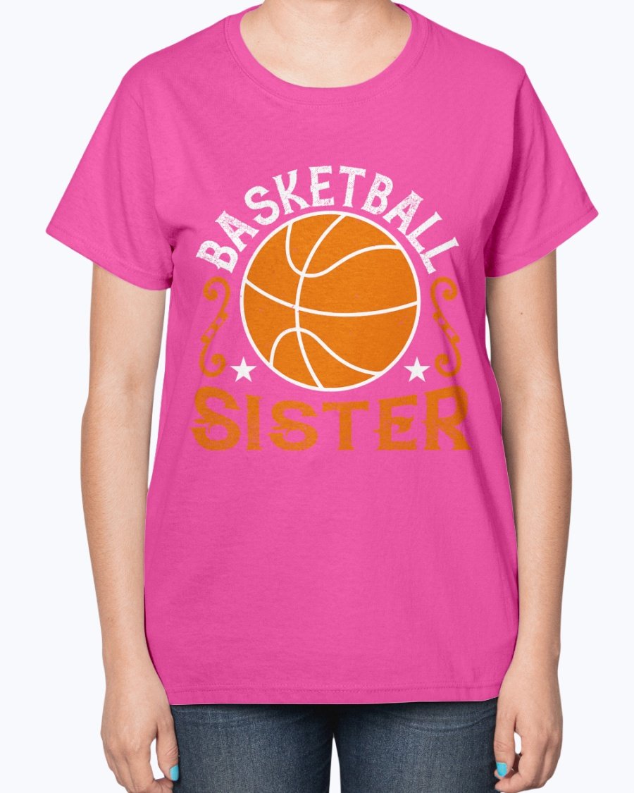 Embrace your passion for basketball with the Basketball Sister Ladies T-Shirt. It's more than just a t-shirt; it's a statement of your love for the game. Order yours today and show off your basketball spirit in style!