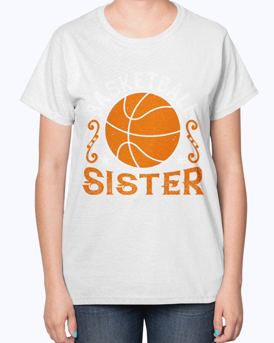 Whether you're heading to a basketball game, hanging out with friends, or just running errands, this t-shirt is the perfect choice. Pair it with your favorite jeans or shorts for a casual look, or dress it up with a skirt for a fun night out. The Basketball Sister T-Shirt is versatile enough to suit any occasion.