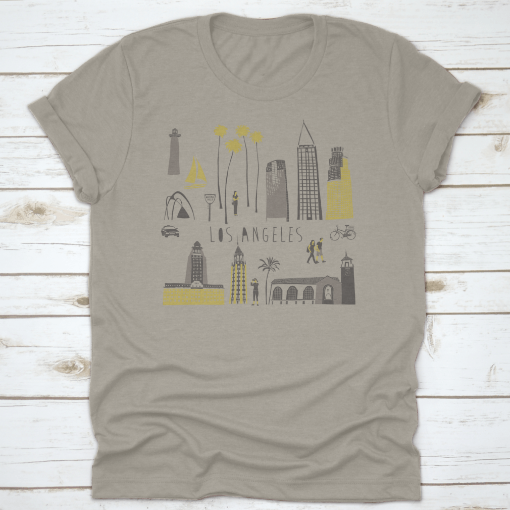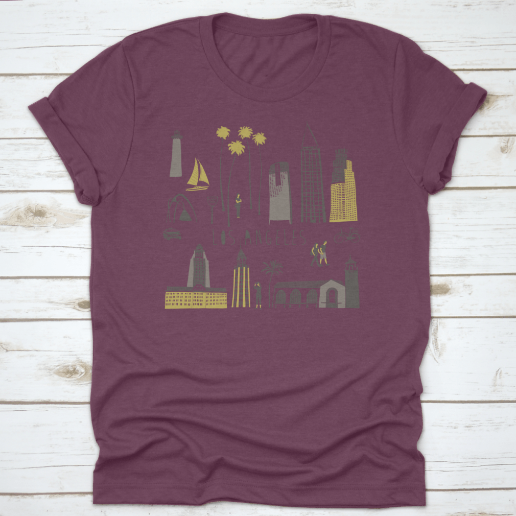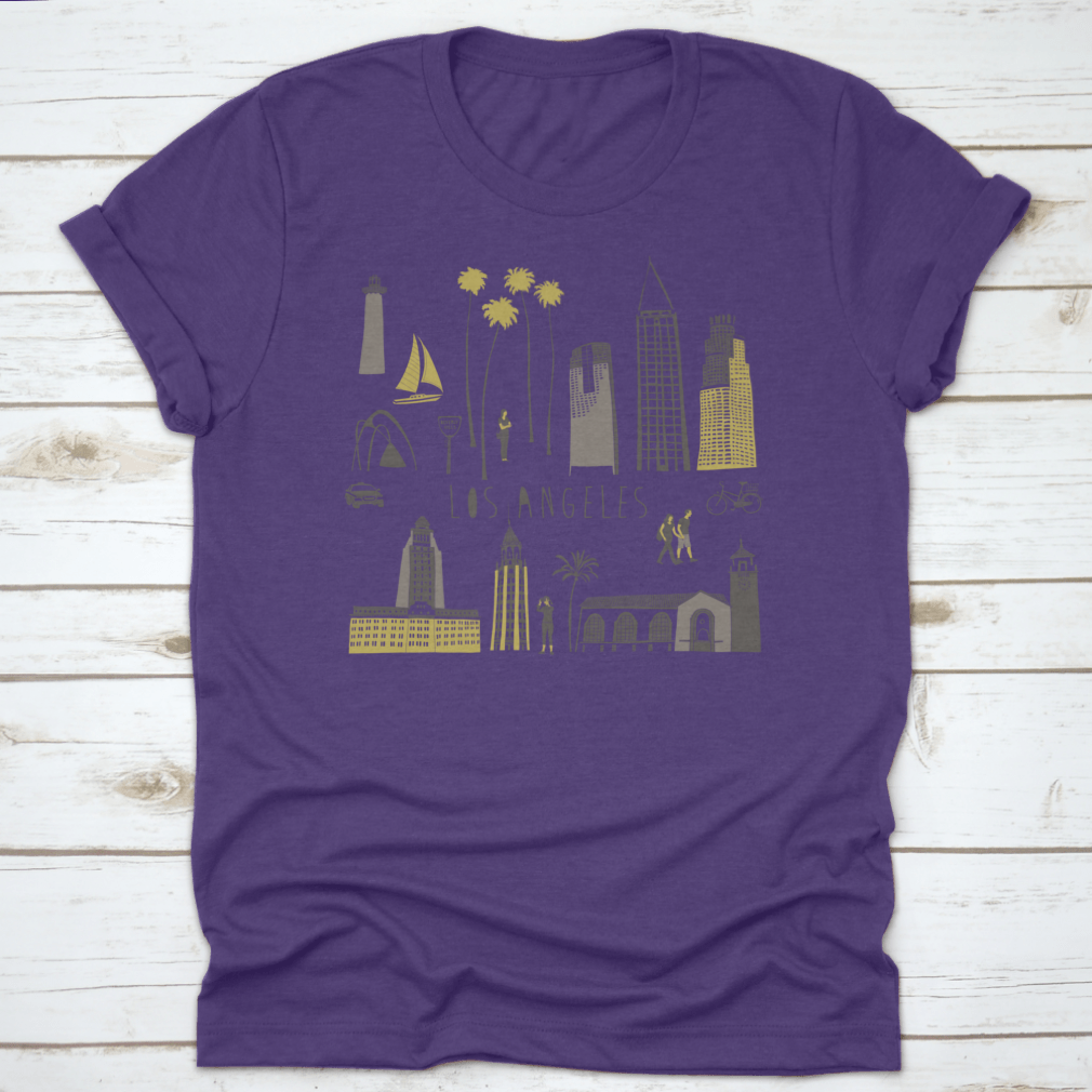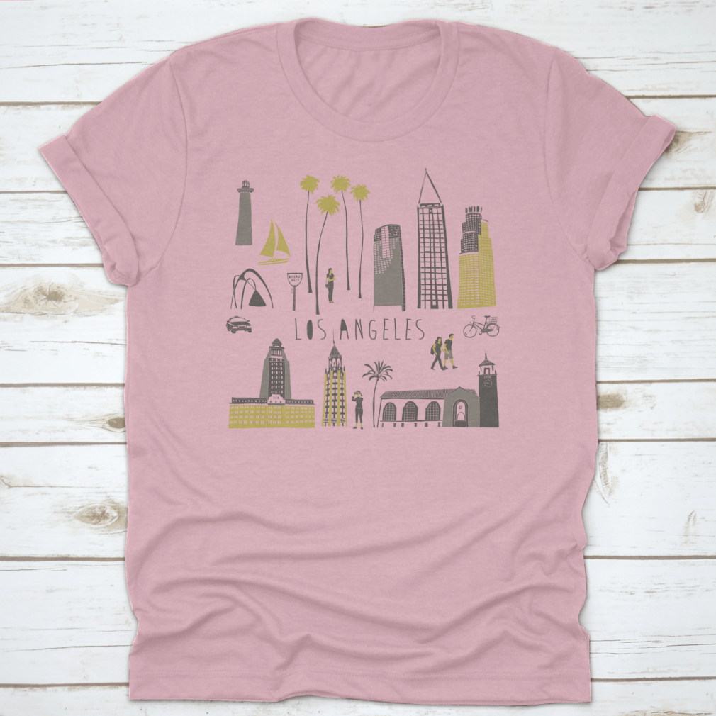 Best Tourist Attractions T-shirt featuring iconic Los Angeles landmarks, made from soft cotton fabric.