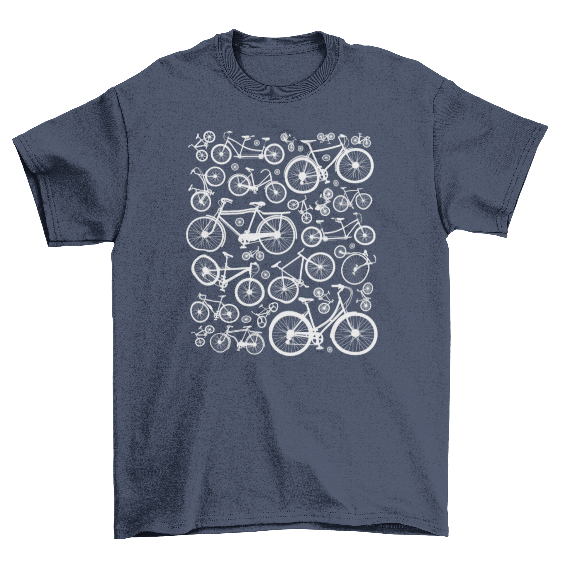 The standout feature of this t-shirt is its eye-catching design. The silhouettes of bicycles are artistically arranged, creating a modern and trendy look that appeals to cyclists and non-cyclists alike. This t-shirt is not just a piece of clothing; it's a statement of your passion for biking and an expression of your personal style.