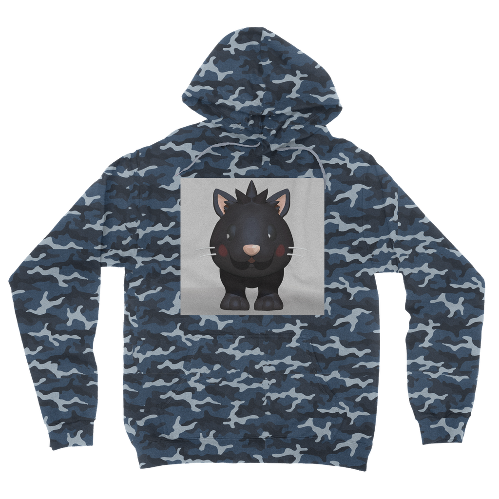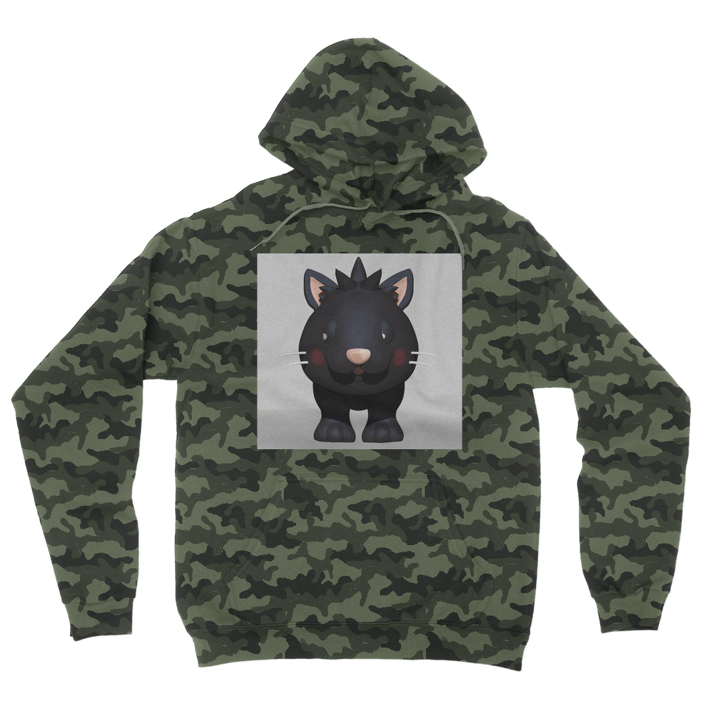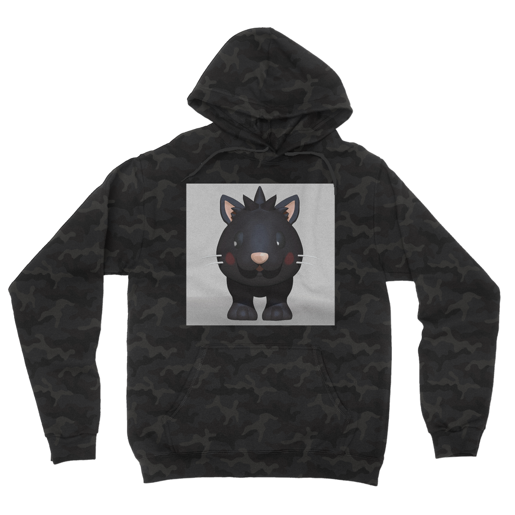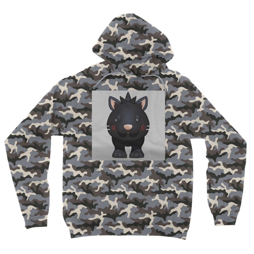 Introducing the Black Kitty Camouflage Adult Hoodie, a must-have addition to your wardrobe that combines style and comfort effortlessly. This hoodie features a striking all-over camouflage design that not only keeps you on-trend but also adds a unique flair to your casual look. Made from a blend of 70% cotton and 30% polyester, this hoodie is designed to provide a soft and comfortable fit, making it perfect for everyday wear.