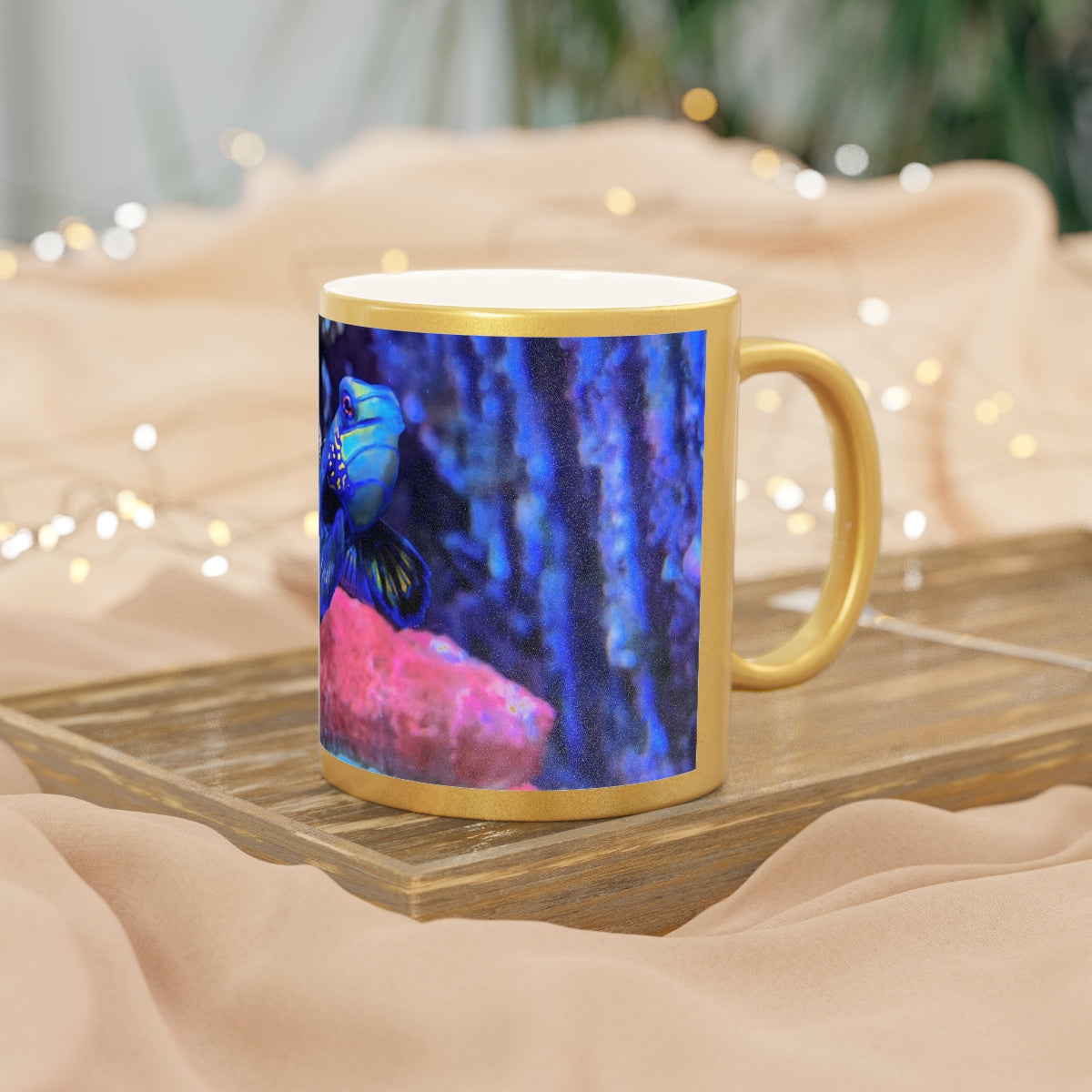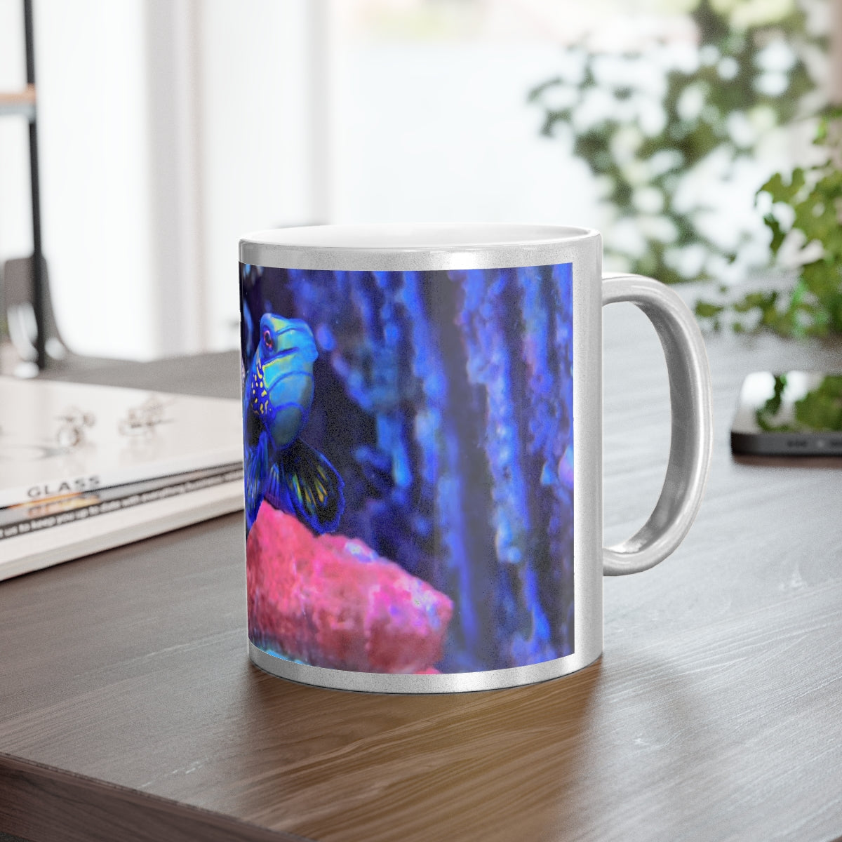 Introducing the Blue Fish Metallic Mug, a stylish and personalized way to enjoy your favorite beverages. This 11oz ceramic mug is available in two eye-catching metallic finishes: Gold and Silver. Whether you're sipping your morning coffee or winding down with a warm tea, this mug adds a touch of elegance to your daily routine.