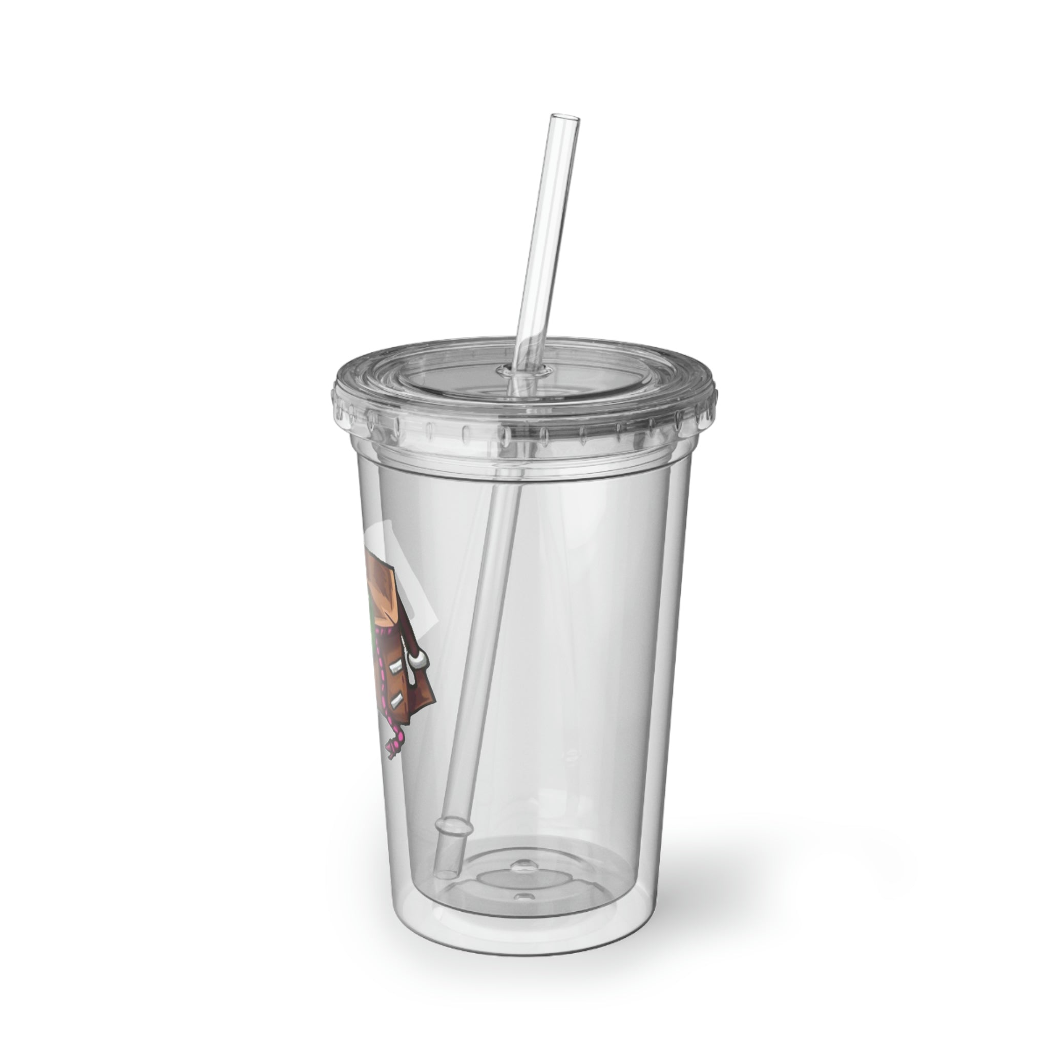 Brown Bag Suave Acrylic Cup with double-wall insulation, featuring a customizable design and a straw, ideal for hot and cold beverages.
