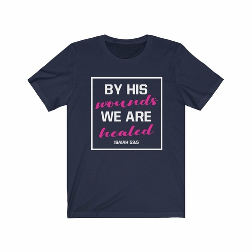 Emblazoned with the powerful words from Isaiah 53:5, this t-shirt serves as a daily reminder of healing and hope. The phrase 'By His Wounds We are Healed' resonates deeply with many, making it not just a piece of clothing, but a statement of faith. Whether you wear it to church, a Bible study, or casual outings, it sparks conversations and encourages others.