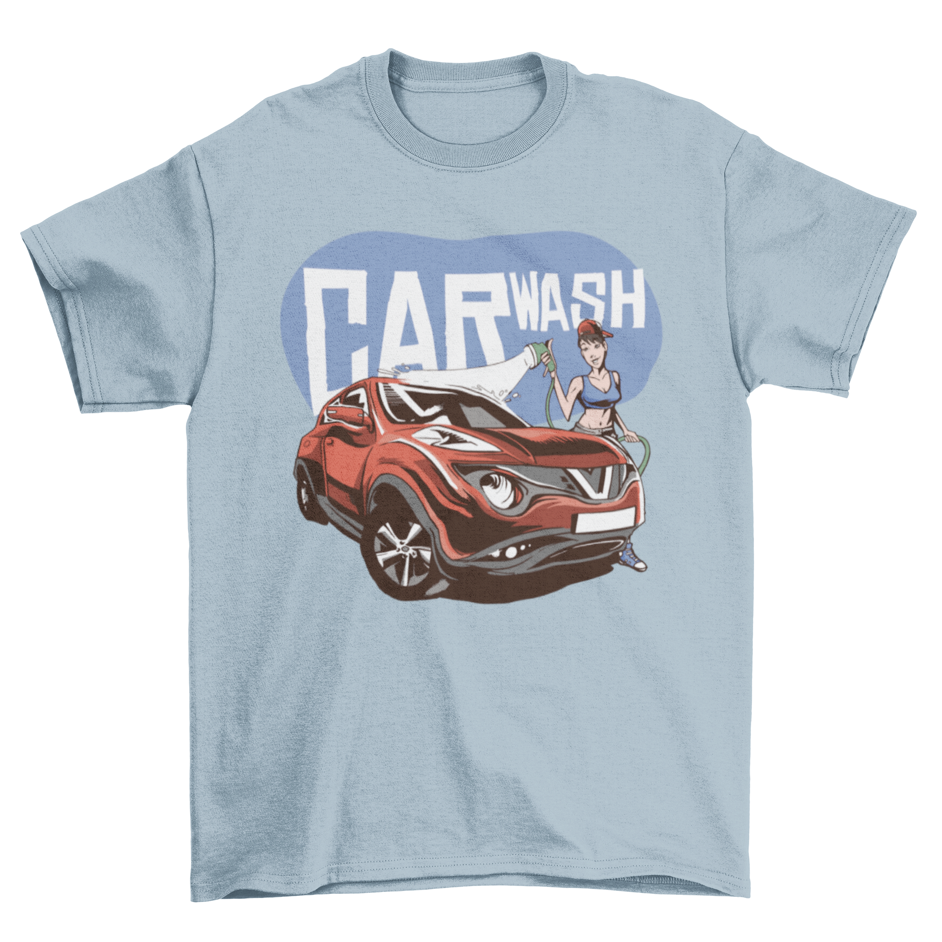 The Car Wash Girl T-shirt showcases an eye-catching graphic that captures the essence of car care and maintenance. The illustration of the girl washing a car is not only playful but also resonates with those who take pride in their vehicles. The bold typography of 'CAR WASH' adds a striking element to the overall design, making it a conversation starter wherever you go.