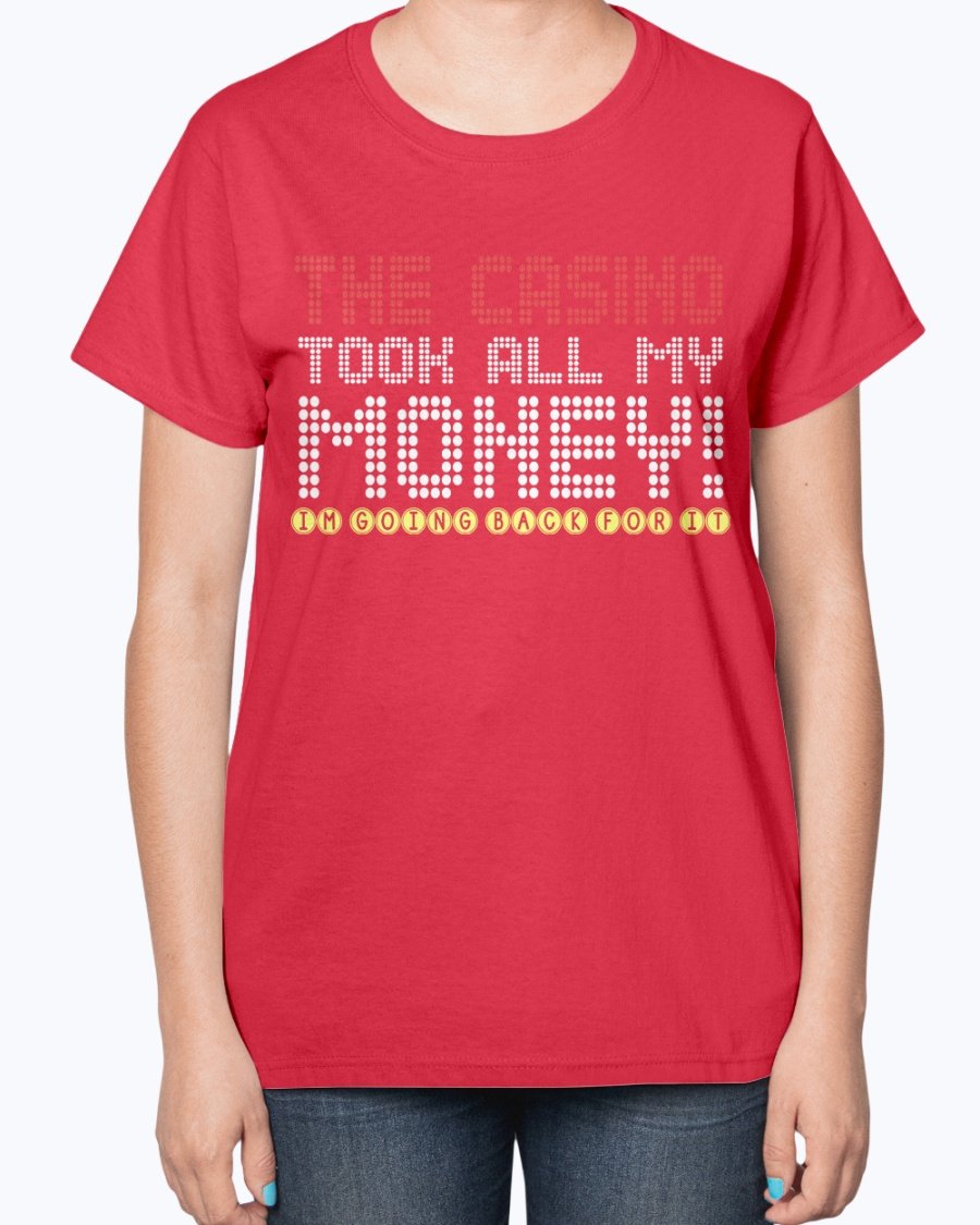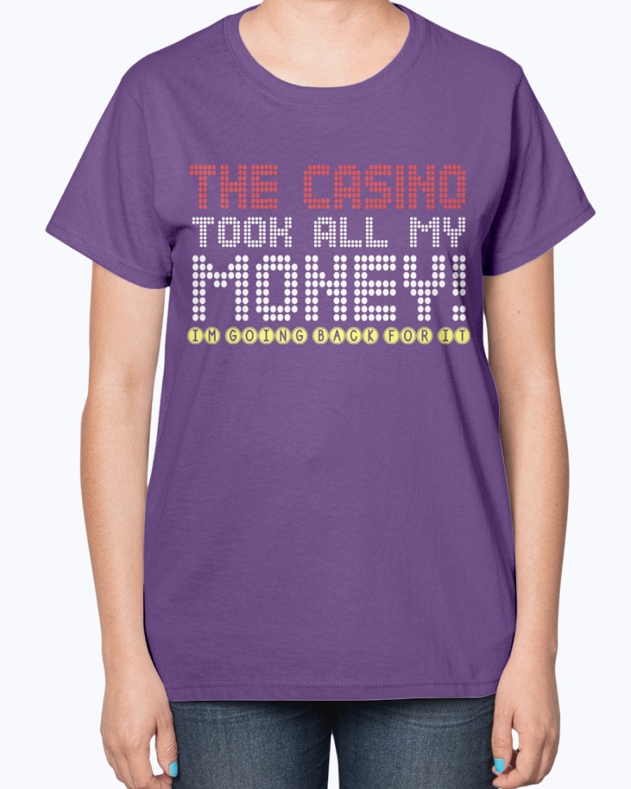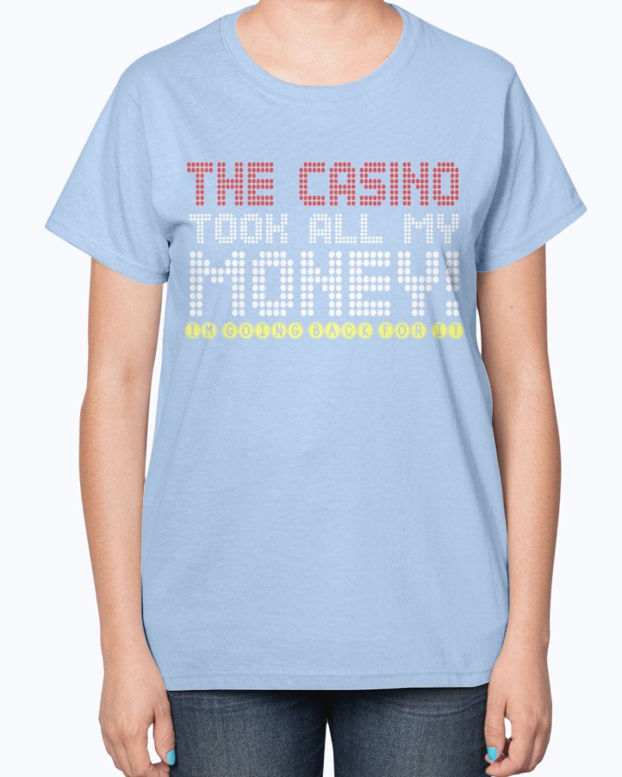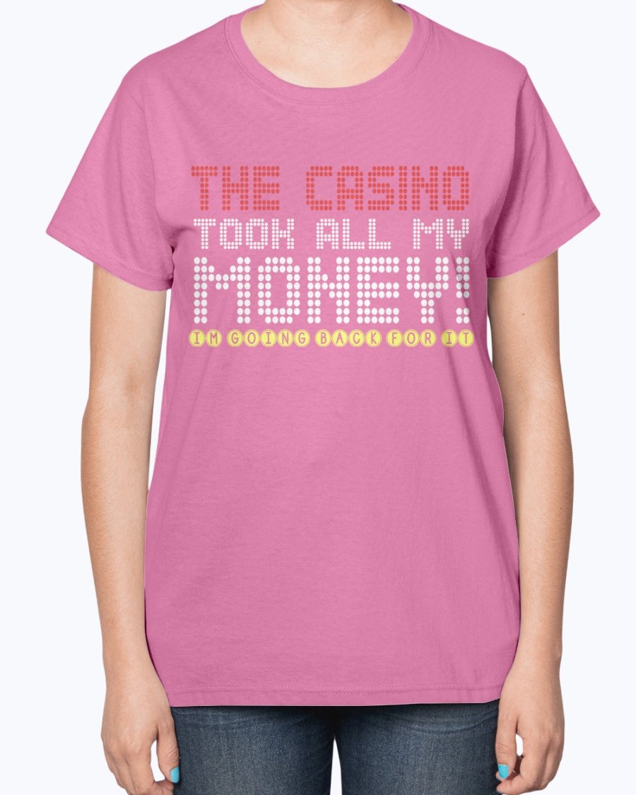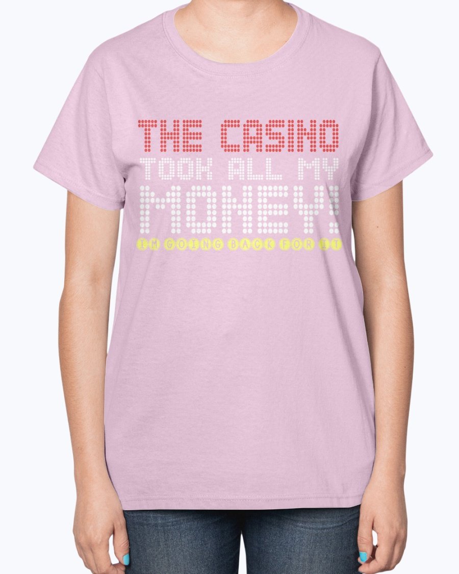 The Casino Took All My Money Ladies T-Shirt features a contoured fit that flatters your figure, making it an ideal choice for casual outings, gatherings with friends, or simply lounging at home. The classic fit is complemented by a feminine-inspired pattern, ensuring you look chic while enjoying your favorite activities. Whether you're hitting the casino or just hanging out, this t-shirt will keep you looking stylish.