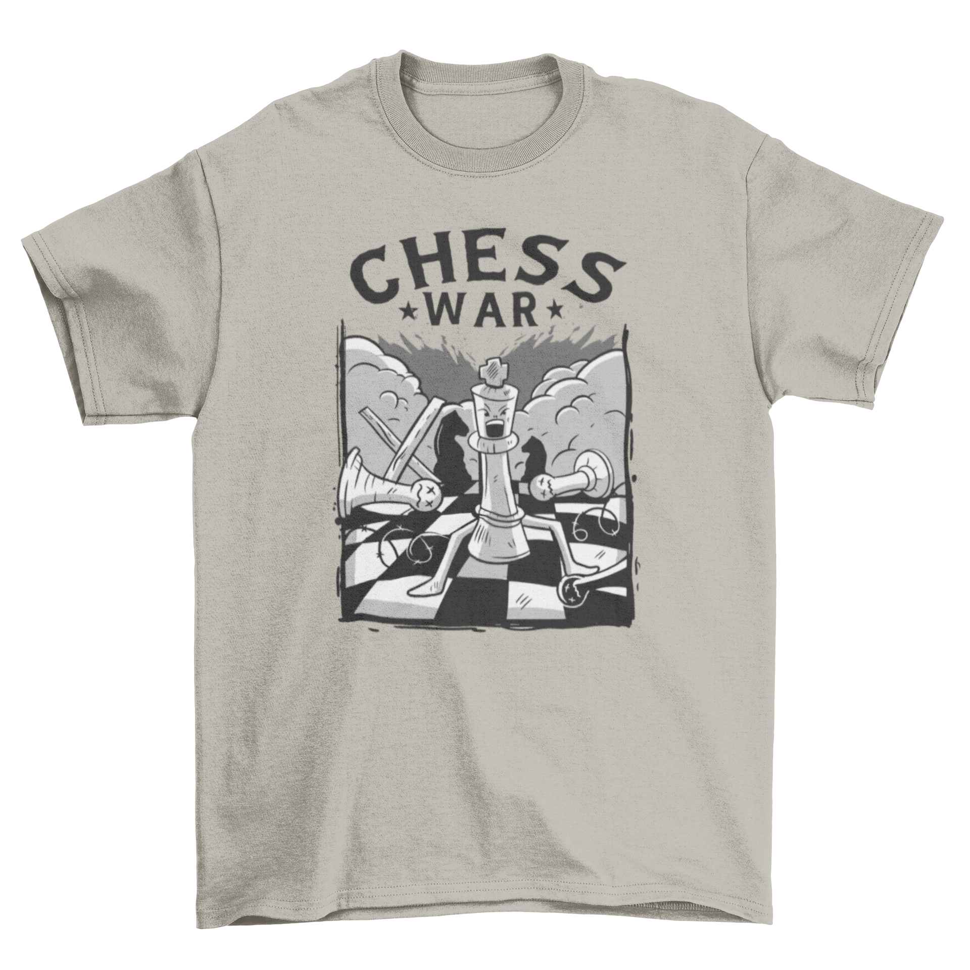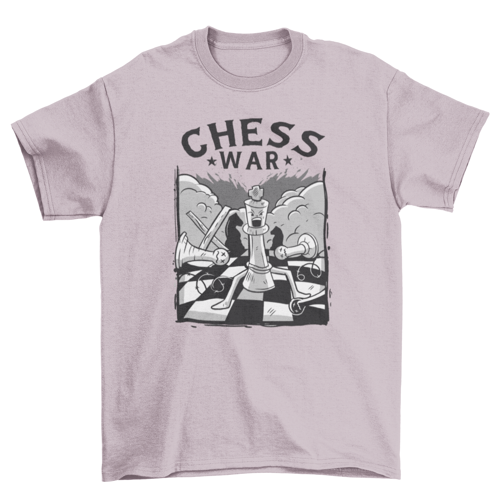 Introducing the Chess War T-shirt, a must-have for chess enthusiasts and lovers of witty apparel. This unique t-shirt features a humorous design that showcases chess pieces engaged in a playful battle, perfectly capturing the spirit of competition and strategy that chess embodies. The caption 'Chess War' adds a fun twist, making it an ideal choice for casual outings, chess tournaments, or simply lounging at home.